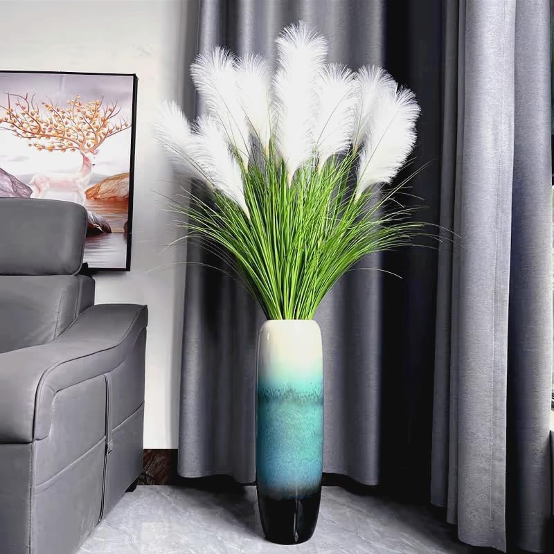 • الحجم والعبوة: 4 قطع من شجيرة البصل الصناعية معبأة بشكل مستقيم في صندوق طويل، يبلغ الارتفاع الإجمالي حوالي 37.4 بوصة، ويوجد حوالي 200 ورقة رفيعة و5 رؤوس قصب لكل منها. المزهرية غير متضمنة.