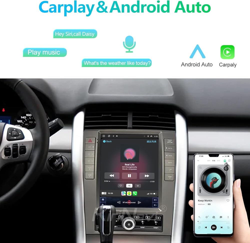 ستيريو راديو السيارة لفورد إيدج 2009-2015 راديو أندرويد أوتو كاربلاي نظام تحديد المواقع للملاحة شاشة عمودية نمط تسلا مع دي إس بي في وحدة القيادة مشغل الوسائط المتعددة التحكم الصوتي الصوتي