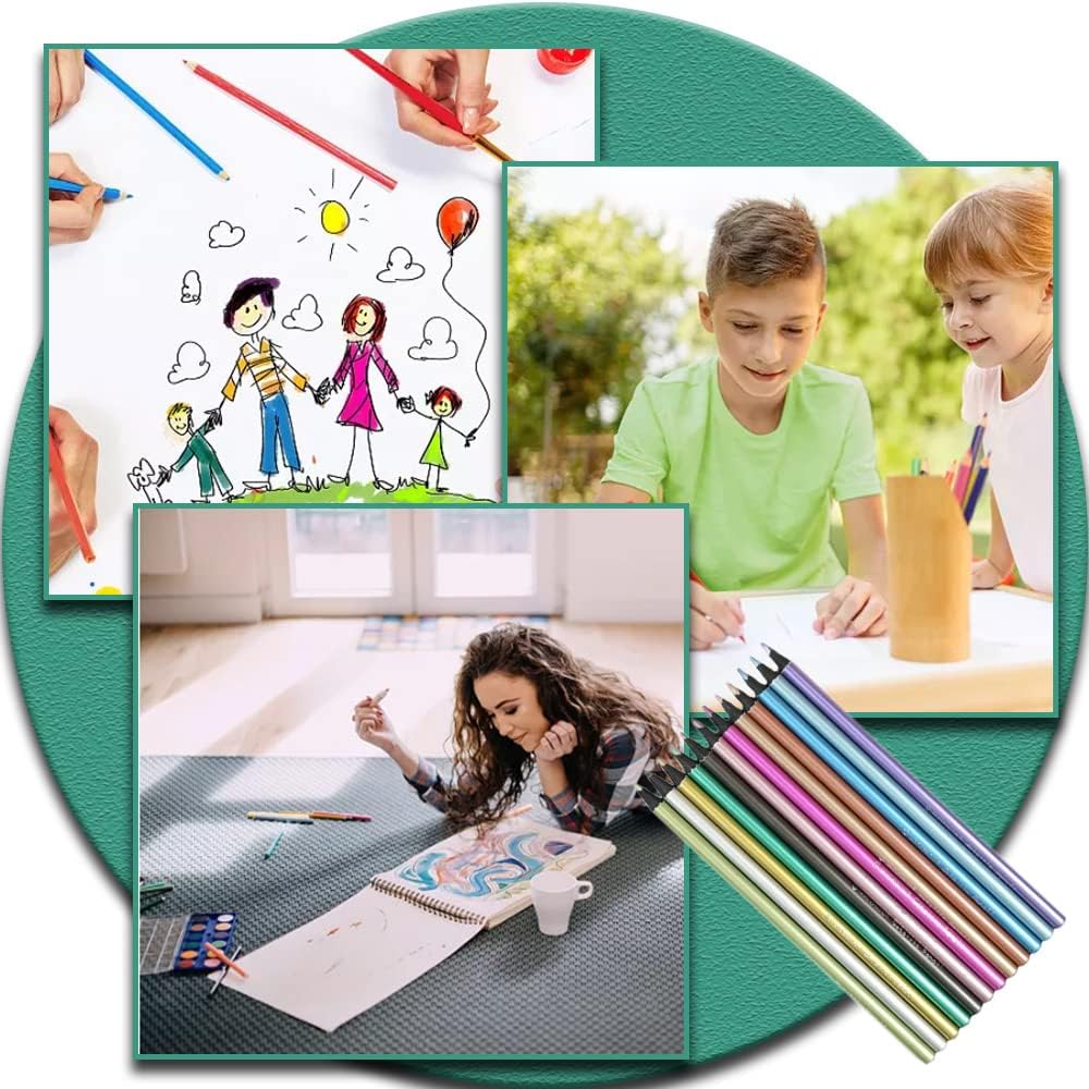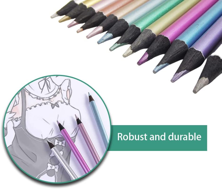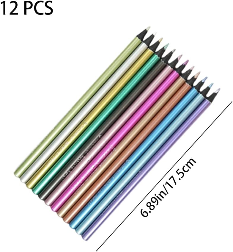 12 Pcs Colour Drawing Pencils Metallic Colouring Pencils Professional Coloured Pencils for Drawing Painting Writing