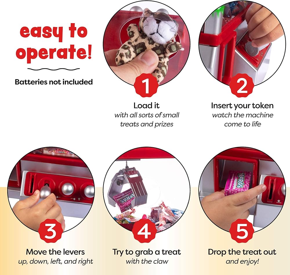 متعة قديمة رائعة: لعبة آلة المخالب للأطفال تشبه تمامًا لعبة آلة المخلب الكلاسيكية التي تراها في الأروقة. رائعة لتعلم التنسيق بين اليد والعين. التحكم في الرافعات لأعلى ولأسفل ولليسار ولليمين.
