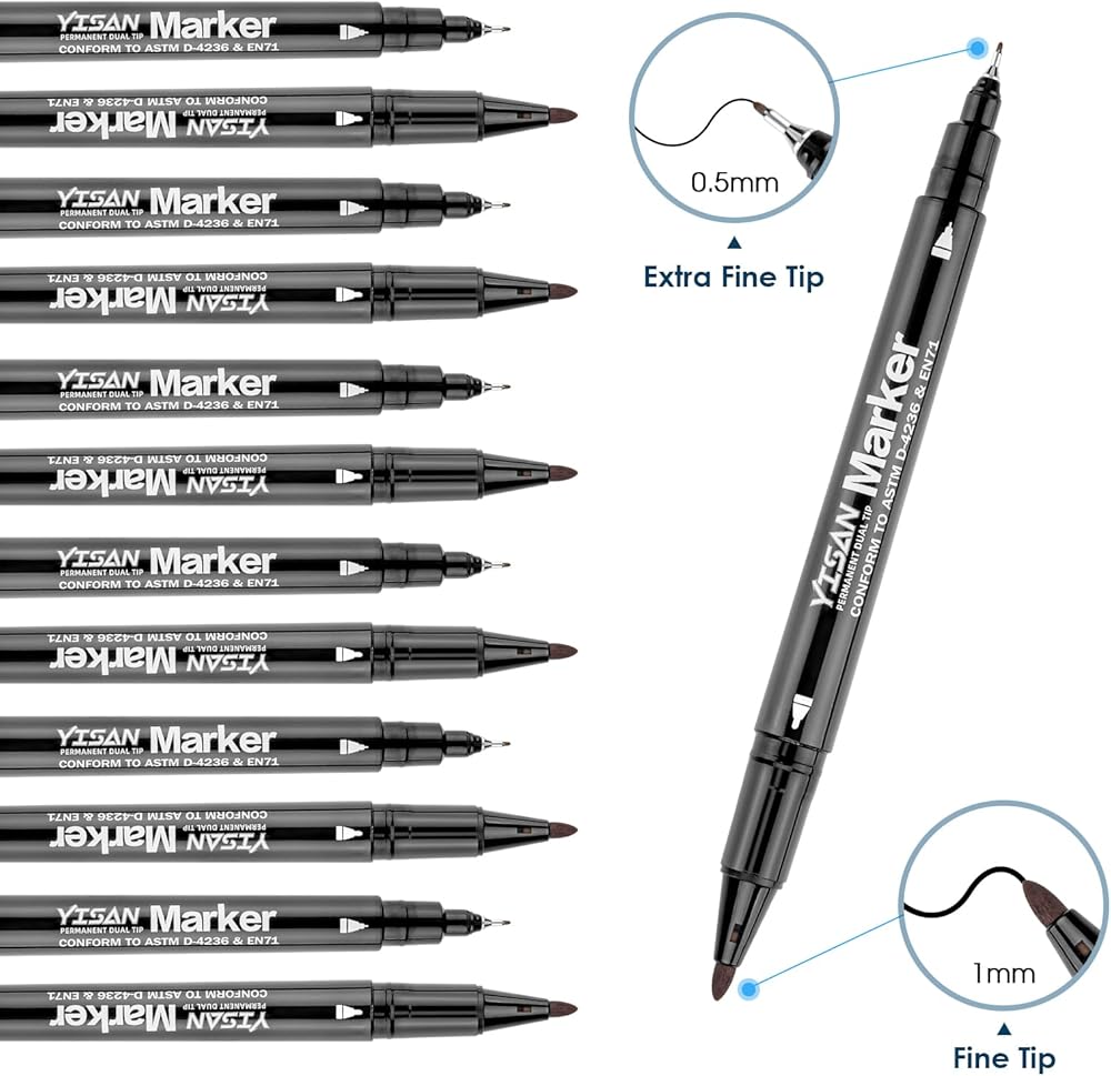 تأتي أقلام YISAN بأطراف مزدوجة وتصميم مريح للحمل: طرف رصاصي رفيع وأطراف دقيقة للغاية رائعة للرسم والكتابة بدقة.