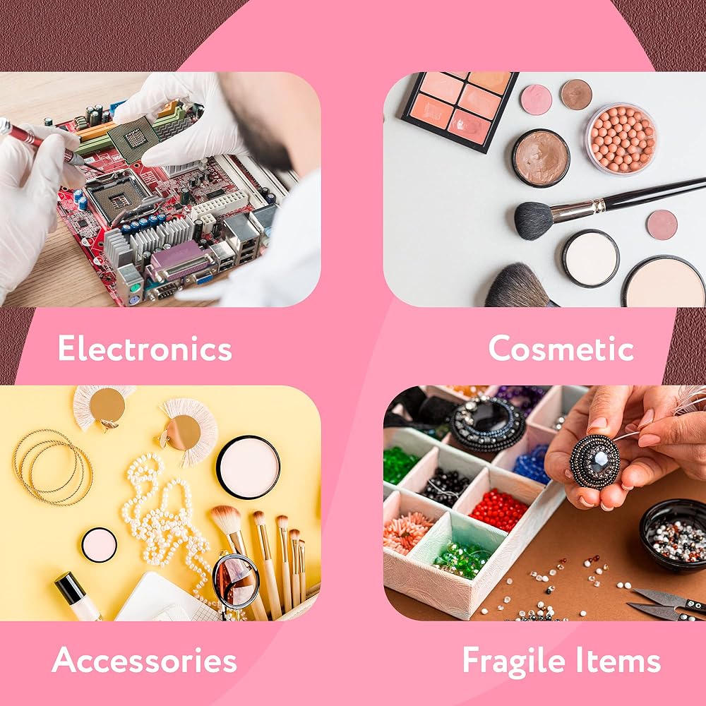 تأثير مضاد للكهرباء الساكنة. تحتوي مادة LDPE المستخدمة في الحقيبة ذاتية الغلق على مواد مضافة لا تتراكم الكهرباء الساكنة وتزيل بشكل فعال خطر التلف الساكن. وبالتالي، فإن استخدام هذه الأظرف الفقاعية الوردية الشفافة سيحمي أجهزتك الإلكترونية من الدوائر القصيرة والأعطال.