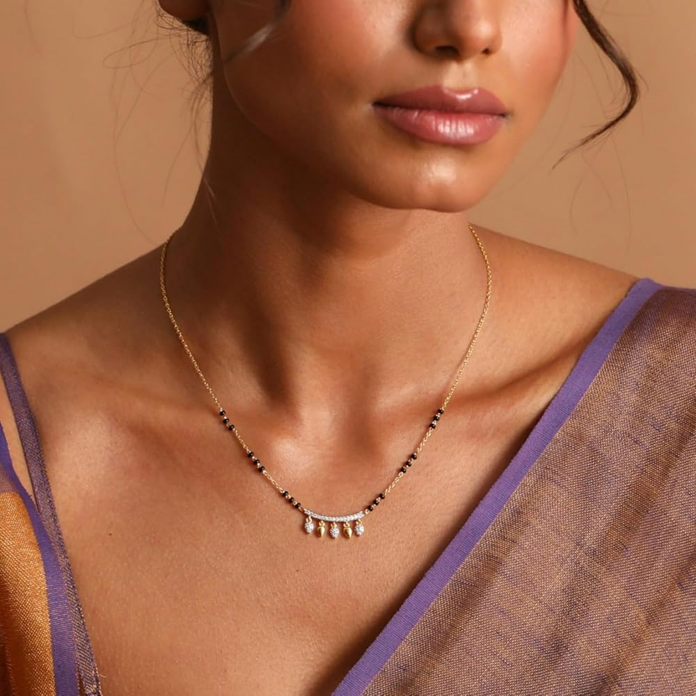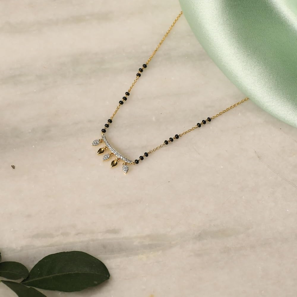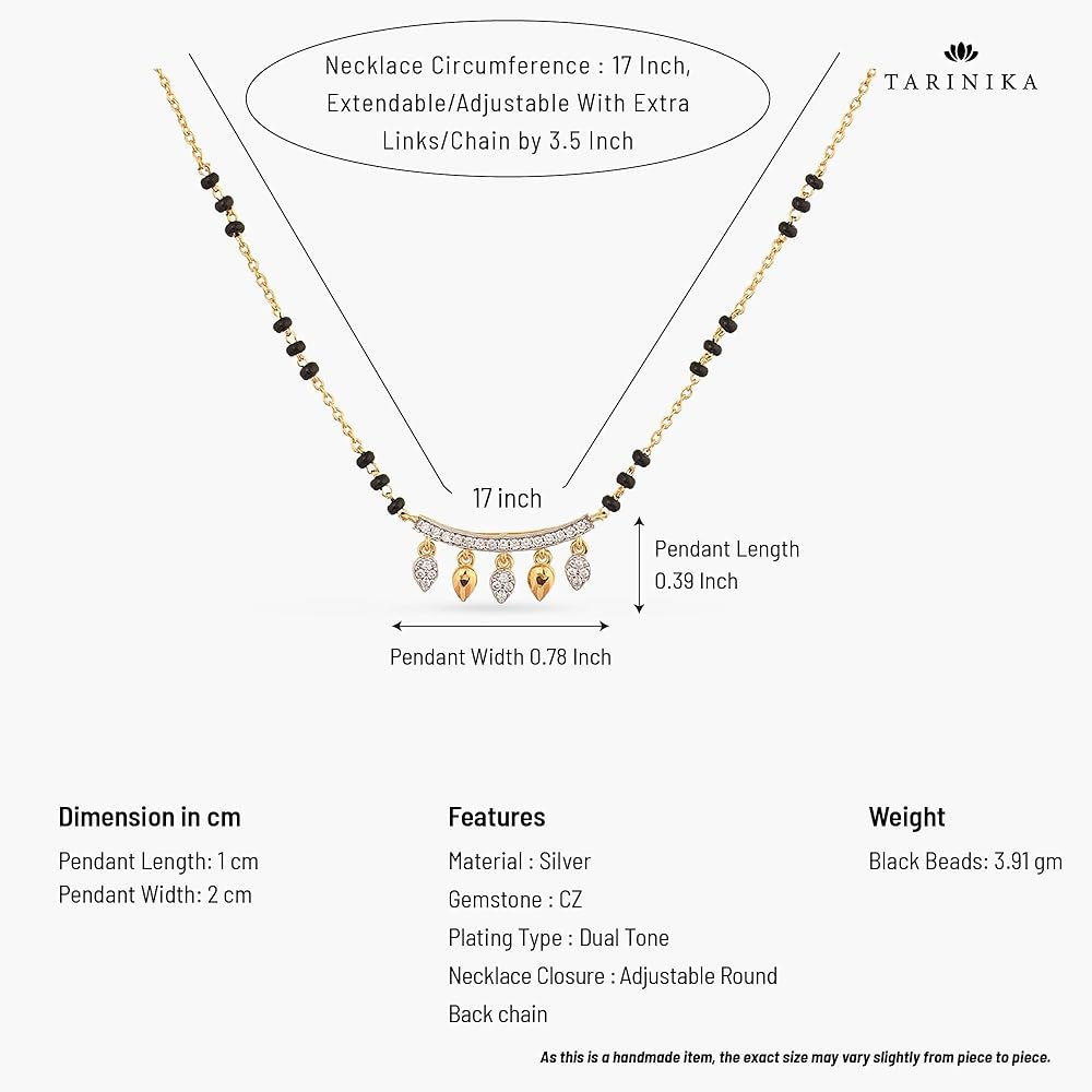 المادة: القلادة مصنوعة من الفضة مع طلاء ذهبي عالي الجودة. هذه القطعة مرصعة بأحجار الزركونيا المكعبة البيضاء الفاخرة والخرز الأسود المستحث.