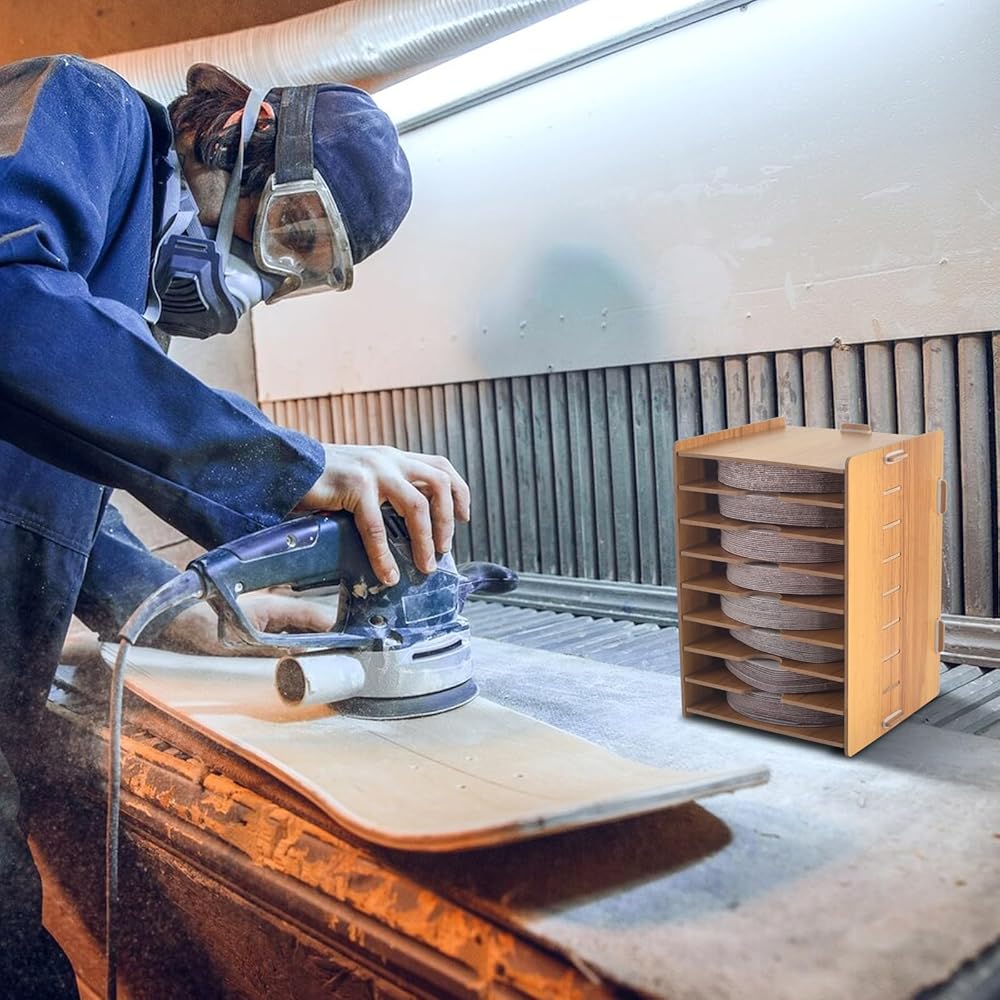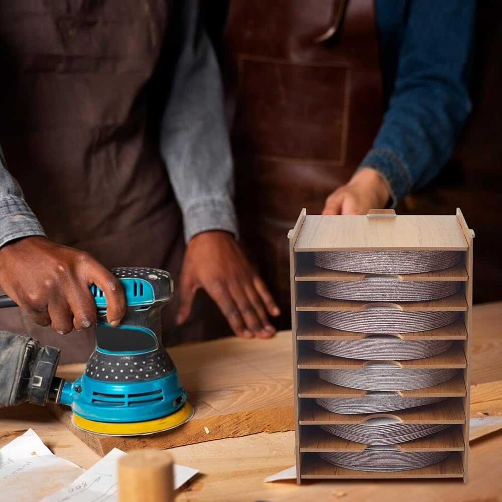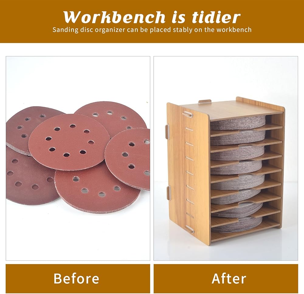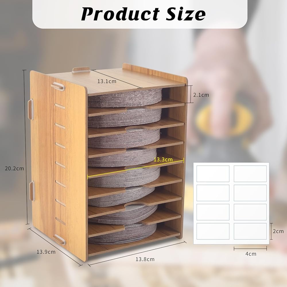 Superior material: 3mm thick density board makes the storage rack stronger and more durable, can store various grit of 5-inch sanding disc. The cherry wood color is perfectly integrated with your workplace. Add a premium texture to your desktop and optimize work environment.