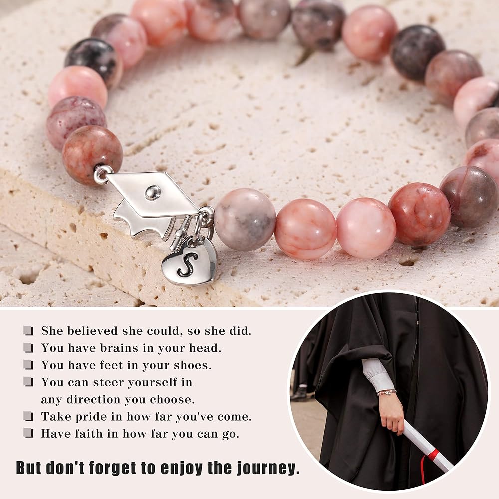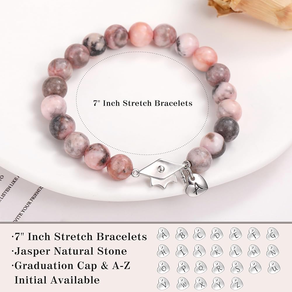 • هدايا فئة 2024: أساور مطرزة بالجاسبر للنساء مع قبعة البكالوريوس والتصميم الأولي من A-Z، هدايا تخرج رائعة للفتيات المراهقات، هدايا فئة 2024، هدايا تخرج من الصف الثامن/الخامس للفتيات، هدايا تخرج جامعية لها. تخرج سعيد!