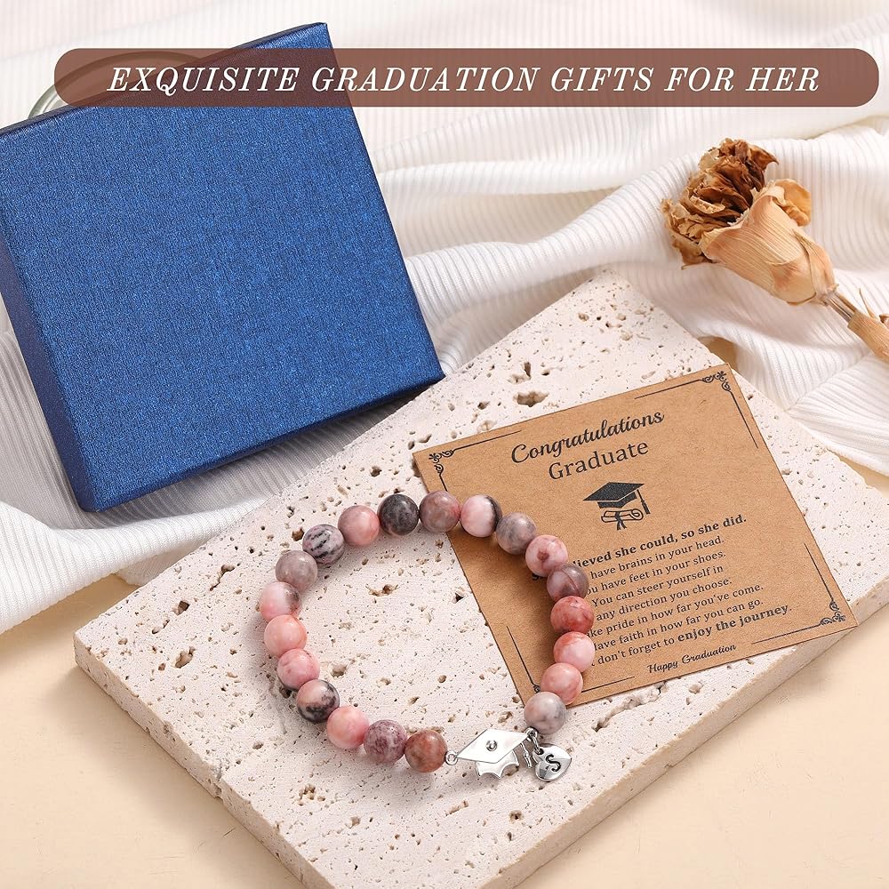 • أساور خرز اليشب: سوار الخرز مصنوع من حجر الحمار الوحشي الطبيعي، وقبعة عازبة في منتصف الخرزة، وكأنك في مركز العالم تمامًا! اجمل هدايا التخرج لها دفعة 2024 هدايا للنساء.