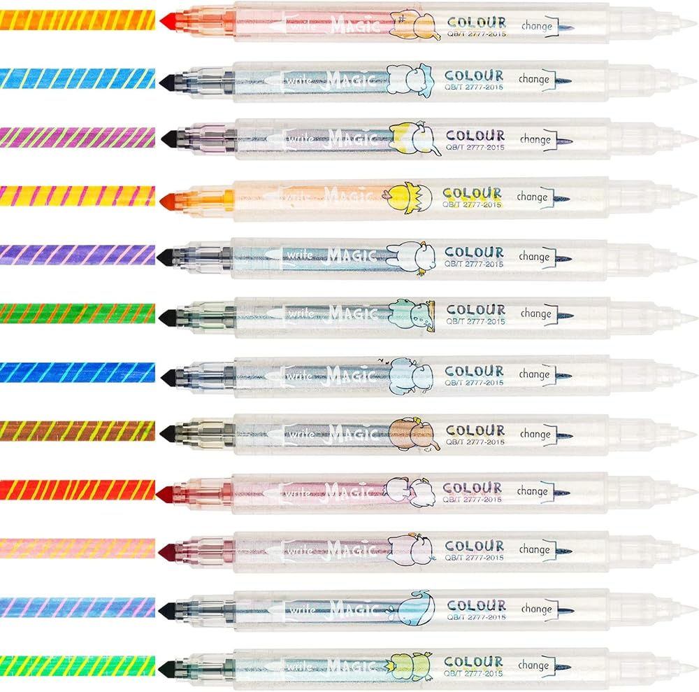 🎨 【Mystery Color Change】The Magic Pens feature to change and erase color, provide marvelous shading and detailing, create 3 Dimensional Art, and enable secret messages. It will stimulate creativity for both beginners and professional artists. Create eye-catching, vibrant illustrations with these magic markers. Draw with the regular side and then use the white tip in colored area for a wondrous transformation. You will definitely love it!
