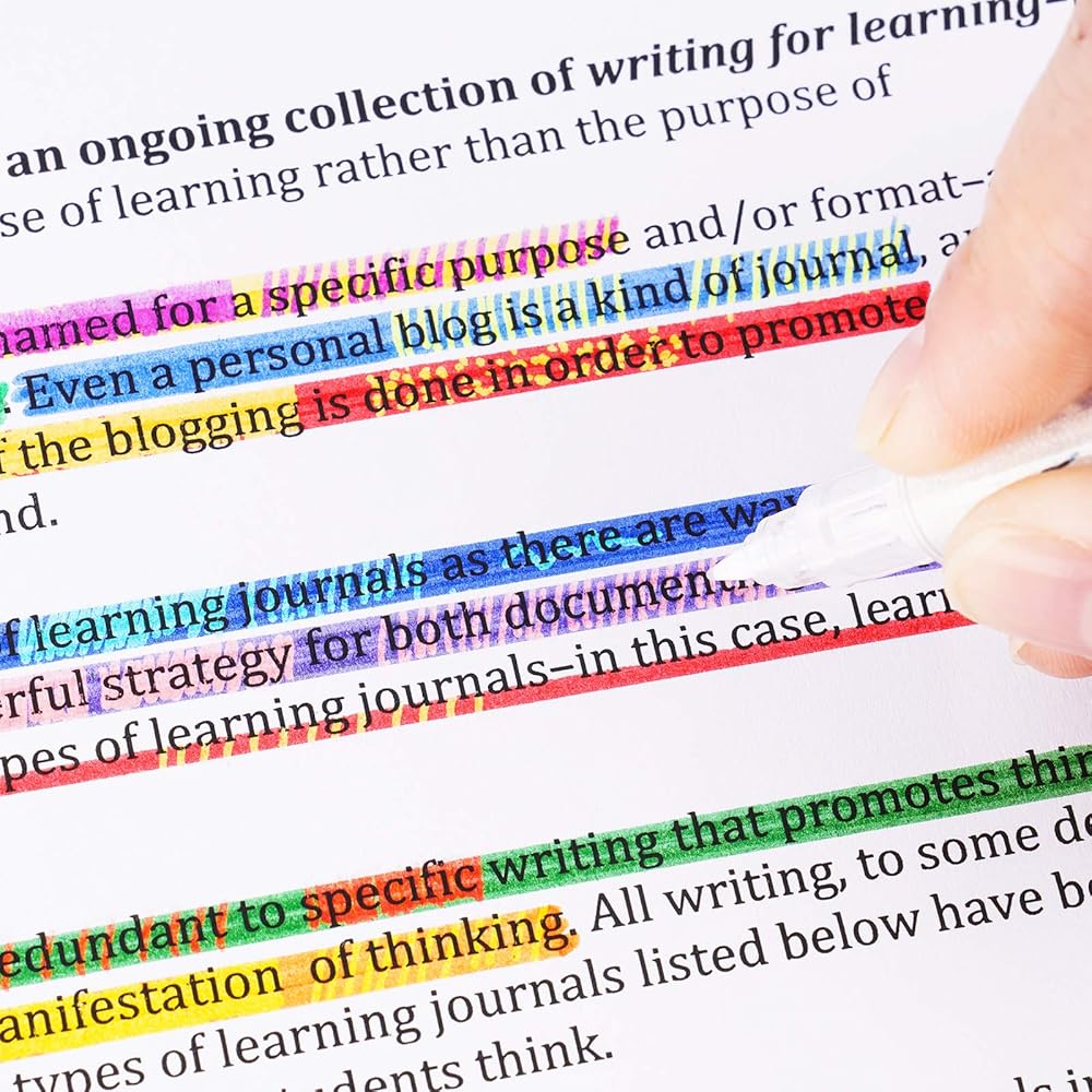 🎨 【Double Tips】Broad and fine twin tips for precise highlighting and underlining, for drawing with both thin and thick lines. chisel tips: 6-7 mm wide. The fine color changer tips make lines that are 1-2 mm wide Ergonomic handle. Suitable for ages 3 and up. Pen tips could be damaged by excessive writing pressure, so it's best to use a light hand to prevent them from fraying and distorting.