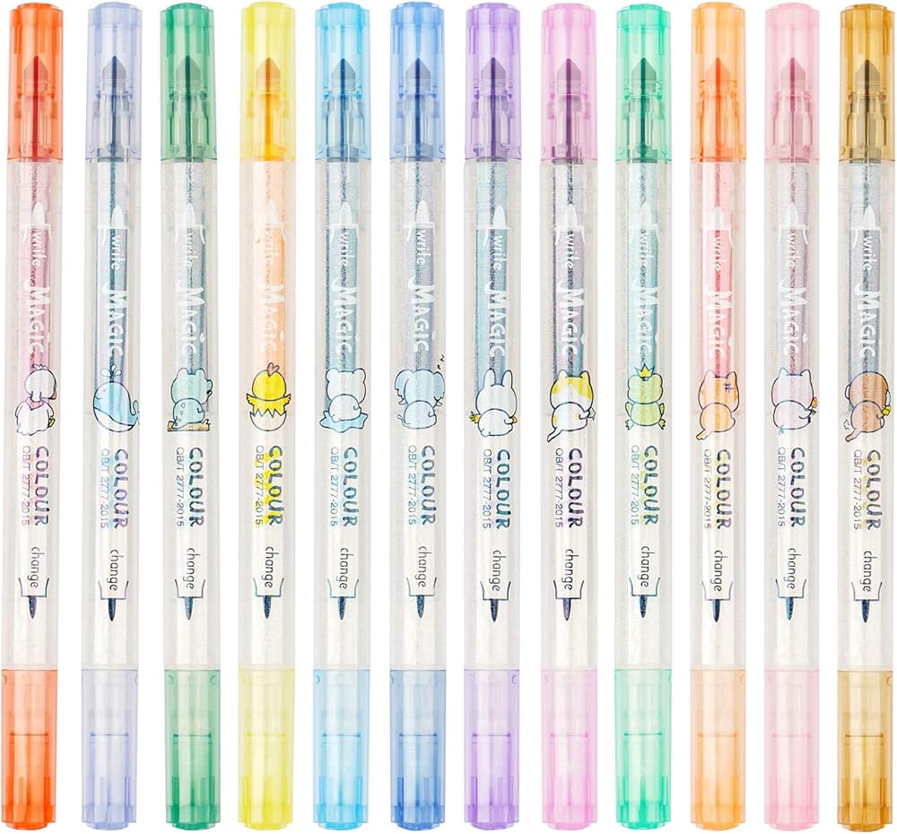 12-Pack Color Changing Marker Set, NiArt Dual Tip Highlighter Assorted Colors