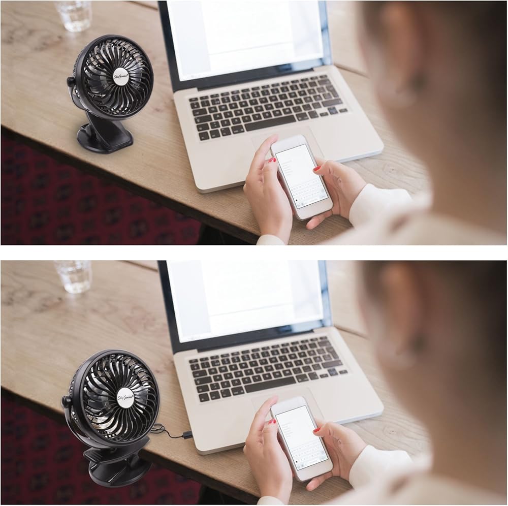 💚【دوران 360 درجة】تعديل رأسي وأفقي 360 درجة، استمتع بالهواء البارد من أي اتجاه، ويبقيك باردًا طوال الوقت.