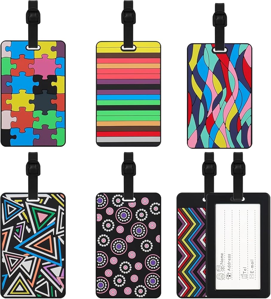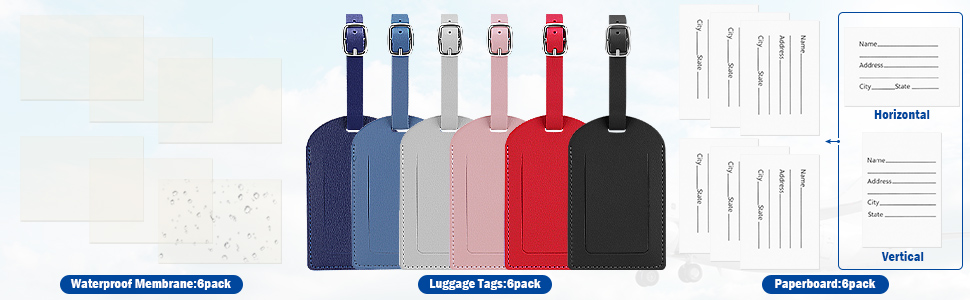 [مجموعة علامات الأمتعة] - 6 قطع من بطاقات الأمتعة بستة ألوان مختلفة: أسود وأحمر وأزرق ووردي ورمادي وأزرق ضبابي. يمكنك استخدامه مع عائلتك وأصدقائك. إنه خيار جيد للهدايا أو الاستخدام الذاتي.