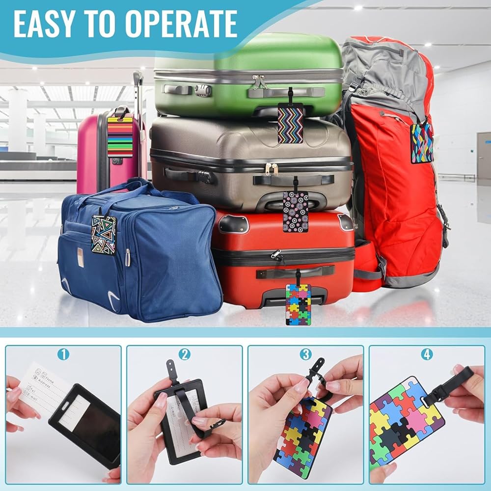 [حماية الخصوصية] - لا تقلق بشأن تسرب المعلومات. تحتوي علامات الحقيبة على غطاء للخصوصية لحماية معلومات هويتك. افتح الغطاء القلاب لتحديد أمتعتك بسرعة وتجنب فقدان الأشياء في المطار أو أثناء رحلة بحرية.
