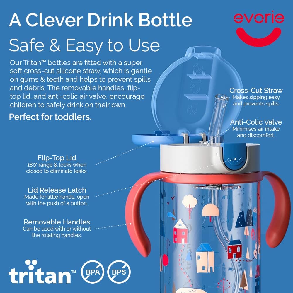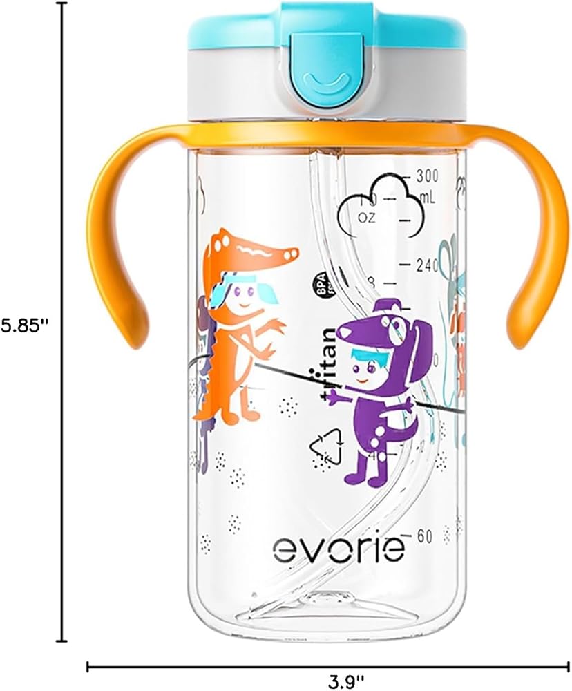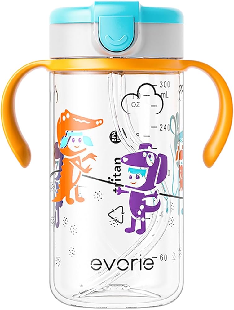 Australian-designed Evorie Tritan simple kids water bottle comes with soft silicone straw and detachable handles. Cross-cut valve prevents choking and backflow of food debris, perfect as snack cups for toddlers. Evorie Tritan toddler water bottle is not only stylish, it is durable to withstand the hard knocks and toss of your tot. 10 Oz size and leakproof baby straw cup makes it perfect to carry in mama diaper bags. Airtight baby cup makes for ideal baby snack containers too. For hygiene purposes, we recommend changing the straw every 6 - 8 weeks, especially if your little one is teething. Purchase the bundle with the replacement straw pack for greater savings. The replacement pack comes with 2 nozzles and a complimentary cleaning brush.