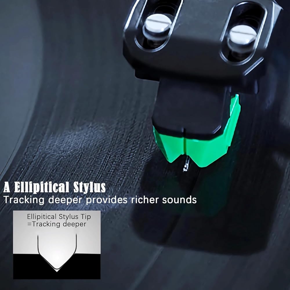 قدرة تتبع عالية - 🔥يتبع قلم الماس البيضاوي هذا تعديل الأخاديد القياسية بدقة أكبر مقارنة بالقلم المخروطي، مما يوفر استجابات تردد ومرحلة محسنة مع تقليل التشوه. وتتراوح قوة التتبع بين 1.8 جرام إلى 2.2 جرام.