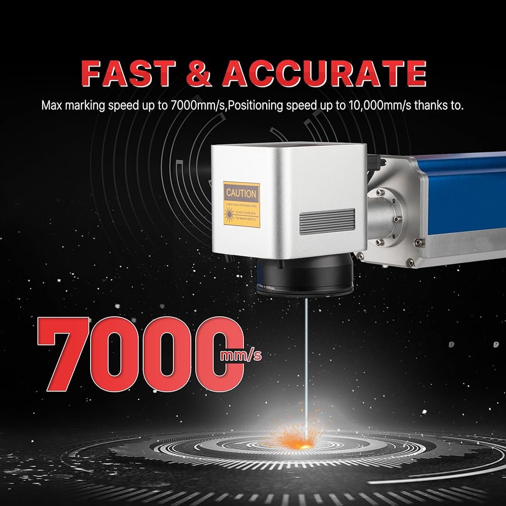 【تجربة النقش الفائق 】طاقة خرج الليزر: 30,000 ميجاوات؛ تقوم Cloudray Laser حصريًا بتخصيص نسختها الخارجية من نقش ألياف الليزر ذات الضوء الأحمر بقدرة 30 وات، مما يضمن استقرار طاقة الإخراج أقل من 3% وعمر عمل استثنائي يصل إلى 100,000 ساعة . تتيح هذه الآلة المتطورة إمكانية النقش بسرعة عالية، حيث تصل إلى سرعة مذهلة تصل إلى 7000 مم/ثانية.