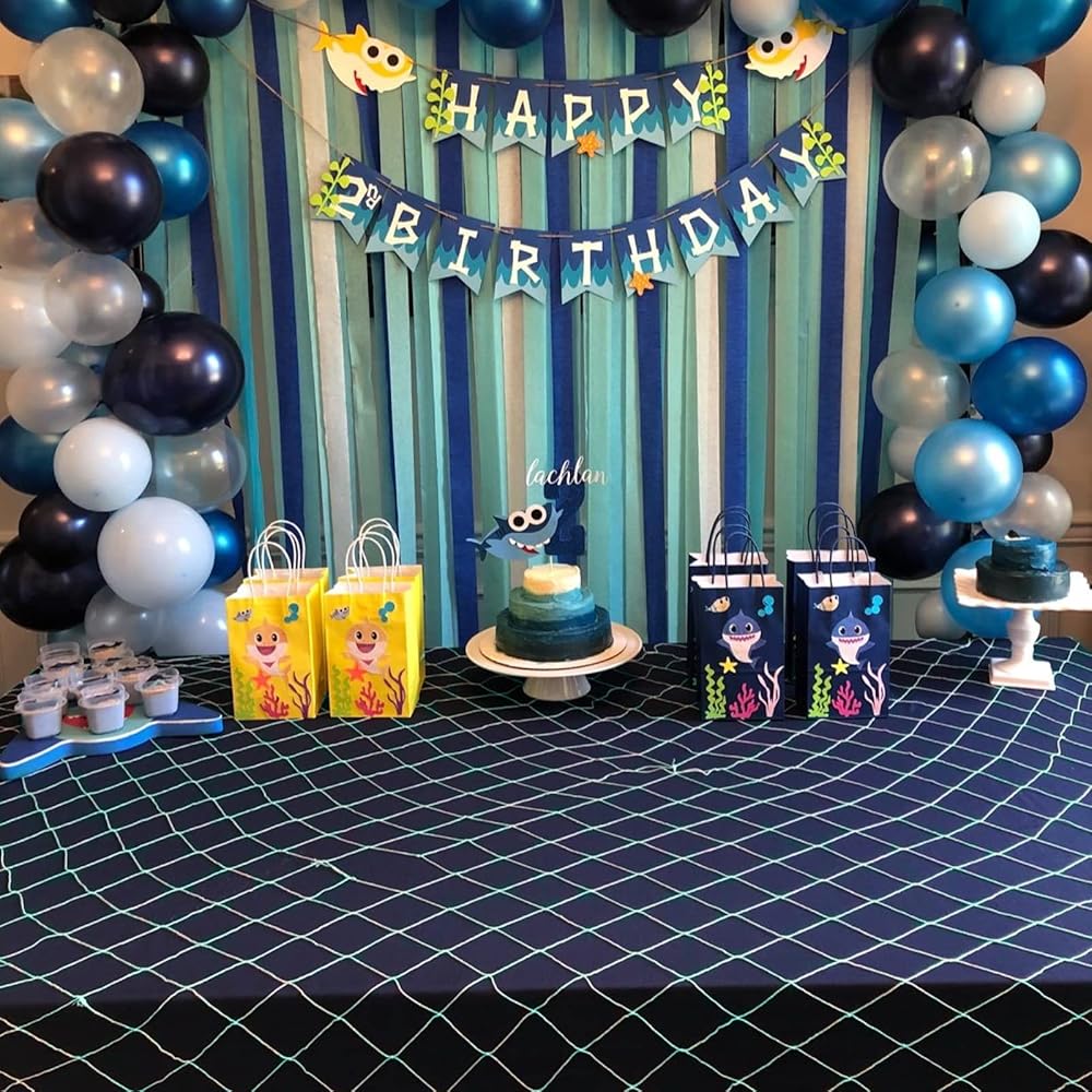 Fish net decorations are great for many party occasions including Nautical Theme Party, Pirate Party, Hawaiian Party, Underwater, Beach, Ocean & Mermaid Party themes. The fishing net can be used in a variety of decorative formats such as a tablecloth decoration, background decoration, or prop decoration.
