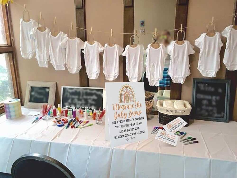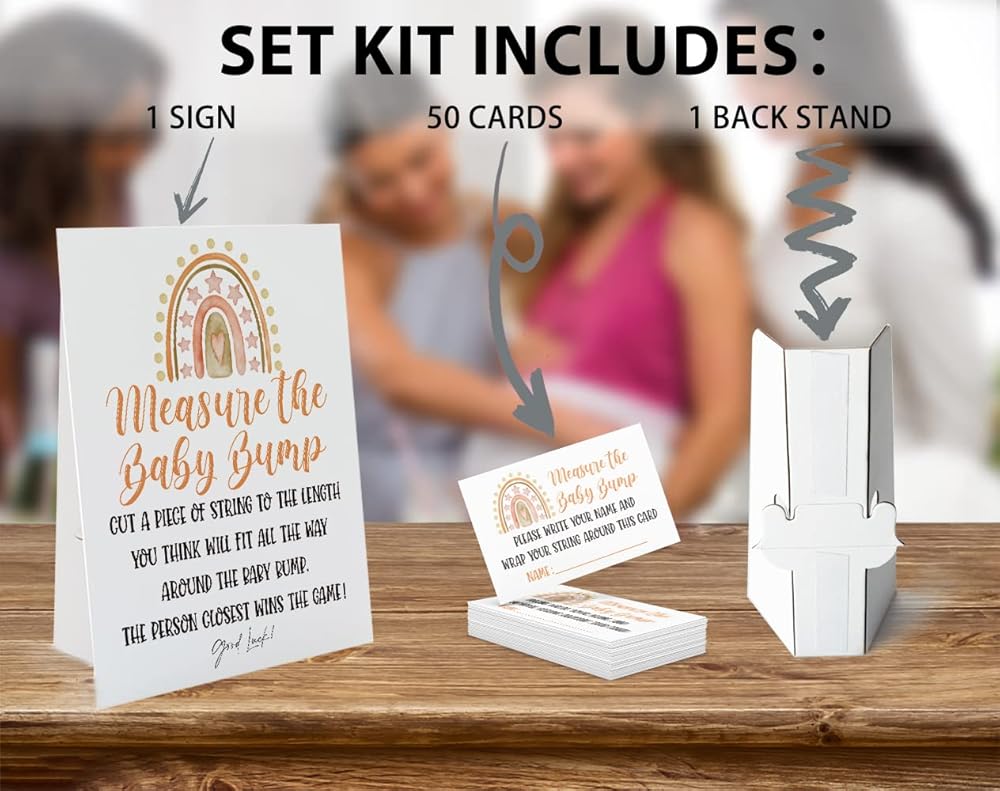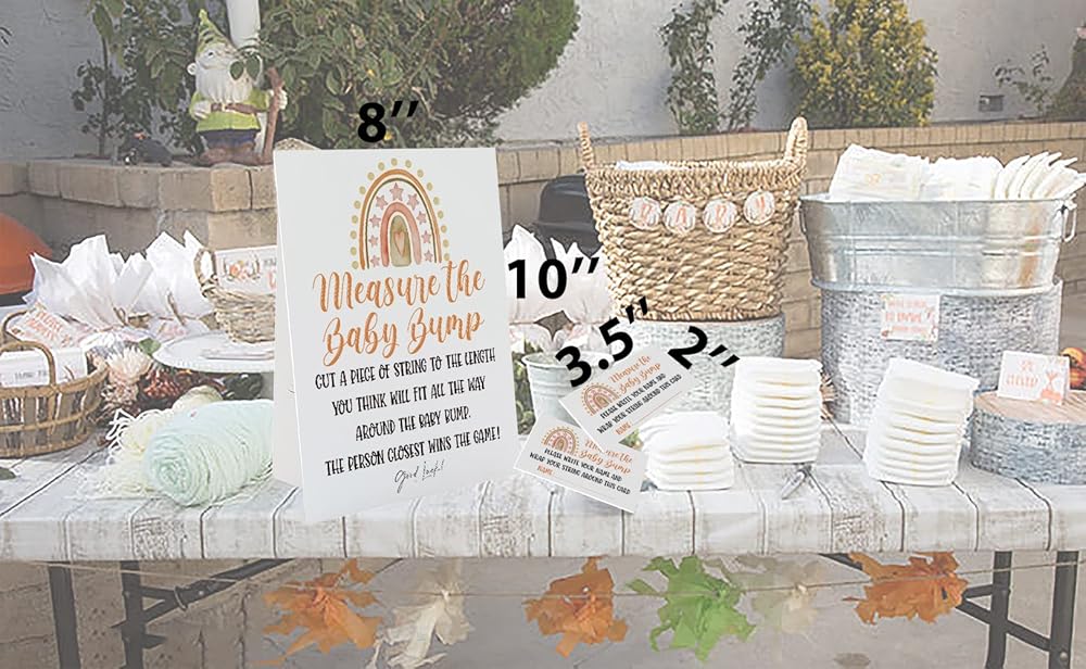 كم هو حجم لعبة بطن الأم، قم بقياس علامة بطن الأم (لافتة 8 × 10 بوصة)، ألعاب استحمام الطفل بموضوع قوس قزح بوهو، ديكورات استحمام الطفل، 1 علامة واقفة + 50 بطاقة تخمين (bump58)