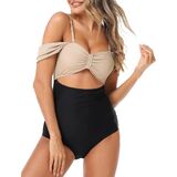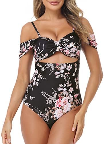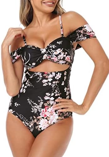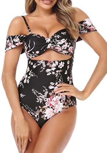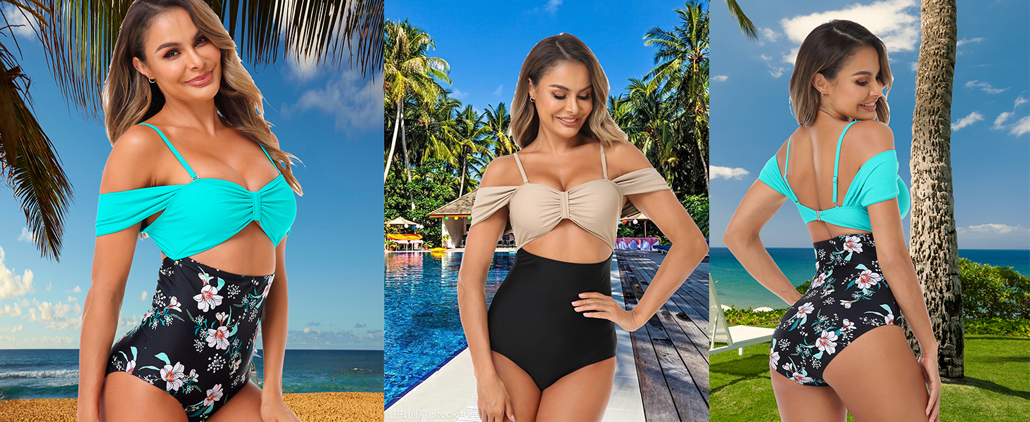 • Off-shoulder one piece bathing suits: The bathing suit for women features an off-shoulder design that highlights your sexy collarbone, chest and shoulder line, The eye-catching color-block splicing, cutout design on the front and back adds a little flirtiness and fashion to the swimsuit,highlighting your sexy curves and making you more attractive