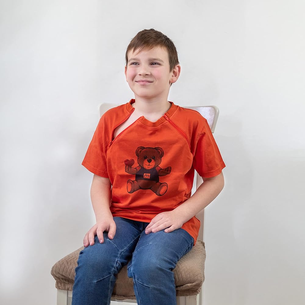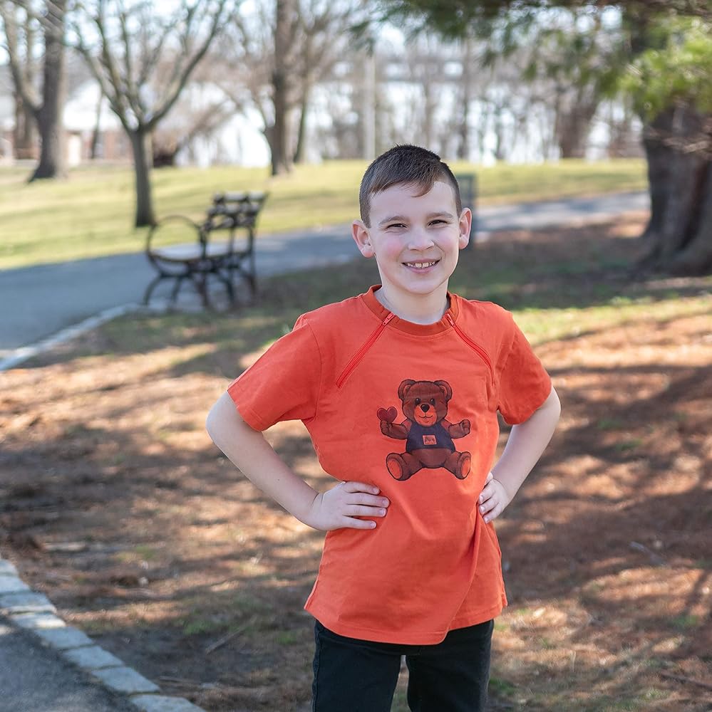فتحة سحاب ناعمة على اليمين واليسار عند الصدر: تحتوي قمصان المنافذ الخاصة بنا للأطفال على سحابات يمين ويسار للوصول إلى الصدر. الملابس التي يمكن الوصول إليها عبر المنافذ للعلاج الكيميائي والتسريب وغسيل الكلى، مع سهولة الوصول إلى المنافذ، تمنحك شيئًا أقل مما يدعو للقلق أثناء خضوع طفلك للعلاج.