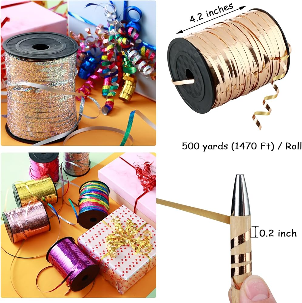 تشمل العبوة: سوف تحصل على لفتين من أشرطة تمويج الشعر الذهبية اللامعة، كل لفة من أشرطة تمويج الحرف اليدوية يبلغ طولها حوالي 500 ياردة وعرضها 0.2 بوصة. يتم تغليف أشرطة التجعيد هذه بشكل فردي، لذلك يمكنك الاحتفاظ بواحدة لنفسك وإرسال واحدة أخرى كهدية أو مشاركتها مع الأصدقاء. مرنة وصديقة للميزانية!
