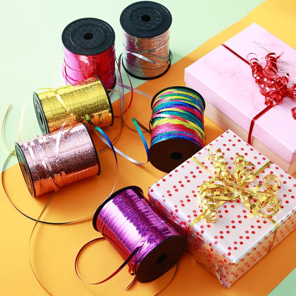 تستخدم على نطاق واسع: لفتان من أشرطة تمويج الليزر (1000 ياردة) مثالية لتغليف الهدايا، وخيوط البالونات للتعليق، وديكورات العطلات، وأشرطة لباقات الزهور، والحرف اليدوية، وديكورات الحفلات، ويمكن حتى استخدامها كجزء من ديكور المنزل للتزيين. الأثاث والجدران والستائر والمزيد لخلق بيئة منزلية دافئة وأنيقة.