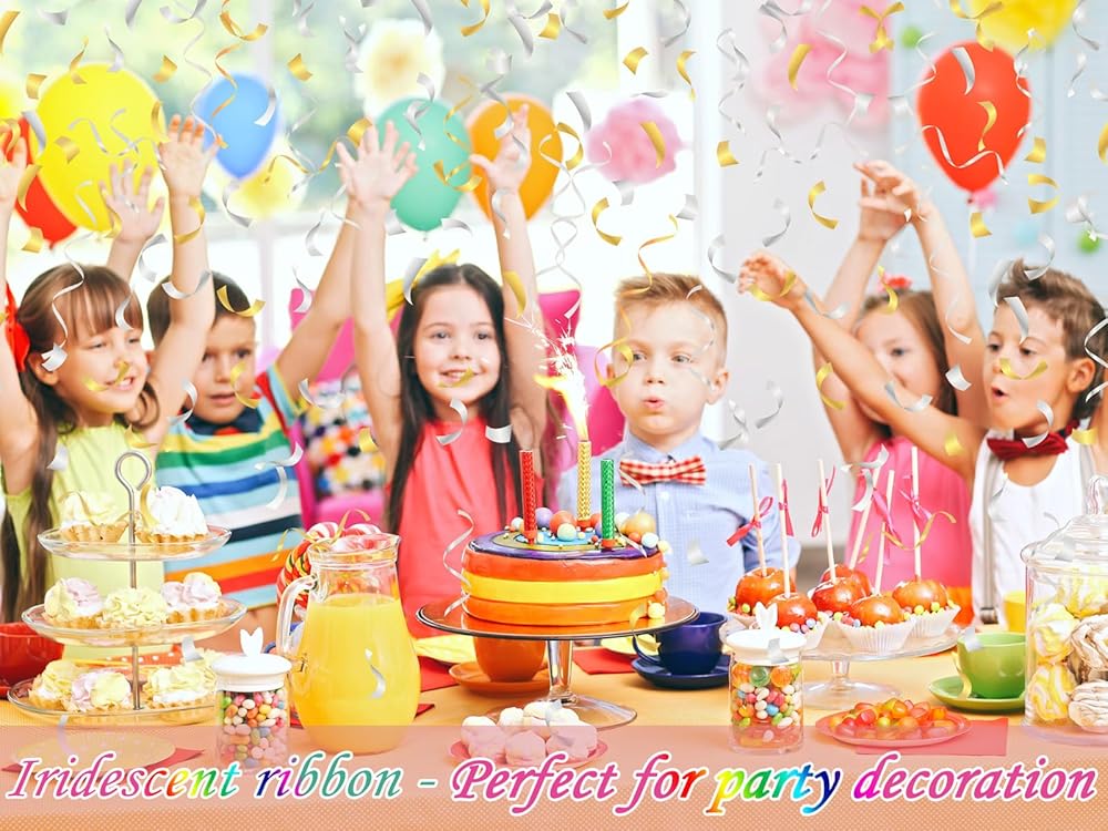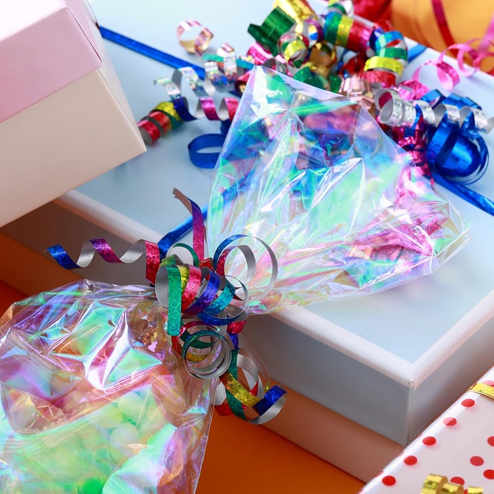 تجعد بشكل لطيف وسهل: من السهل جدًا تجعيد أشرطة التمويج المعدنية اللامعة بالليزر، ويمكنك استخدام المقص أو قلم الرصاص لتجعيدها بلطف في تجعيد أو قوس جميل. يمكنك أيضًا تحريف الشريط المجعد قزحي الألوان إلى أشكال مثيرة للاهتمام بأصابعك دون الحاجة إلى القلق بشأن كسره أو تشوهه.