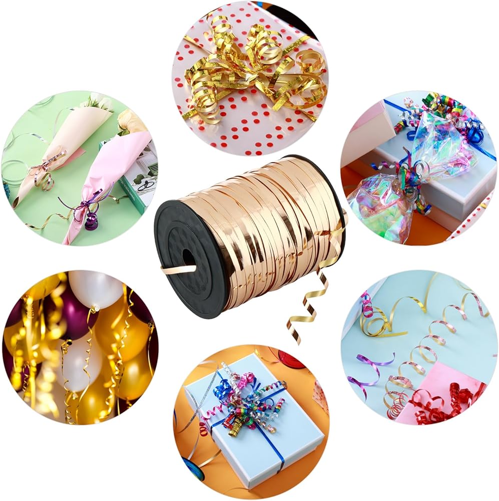 ليس من السهل كسرها: هذه اللفات من الشريط الذهبي الشمبانيا المجعد لتغليف الهدايا مصنوعة من مواد مطورة، وهي أقوى من الشريط العادي وليس من السهل كسرها. لن ينقطع شريط عيد الميلاد المخصص لتغليف الهدايا عند تجعيده باستخدام حافة المقص أو أي أدوات أخرى.