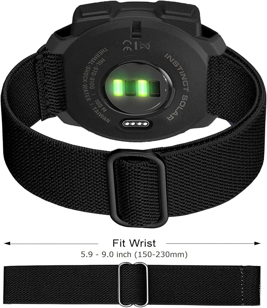 • ✅مرنة وقابلة للتمدد - تم تصميم هذه الأربطة الرياضية من Garmin بإبزيم منزلق رفيع من الفولاذ المقاوم للصدأ، مما يسمح لك بتعديل حجم الحلقة بسهولة شديدة حسب رغبتك. يناسب معصمك بشكل مريح دون تضييق. مناسب للمعصم 5.9-9 بوصة.