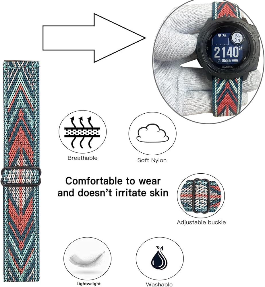• ✅ناعمة ومرنة - أحزمة ساعة جارمين المرنة من جارتو مصنوعة من النايلون المطاطي الفاخر، والذي يمكن أن يمنع الجلد من التهيج والطفح الجلدي، ومسامي، ومتين. يسمح للعرق بالهروب، والتجفيف بسرعة وسهل التنظيف - بديل رائع لأربطة السيليكون لممارسة التمارين.