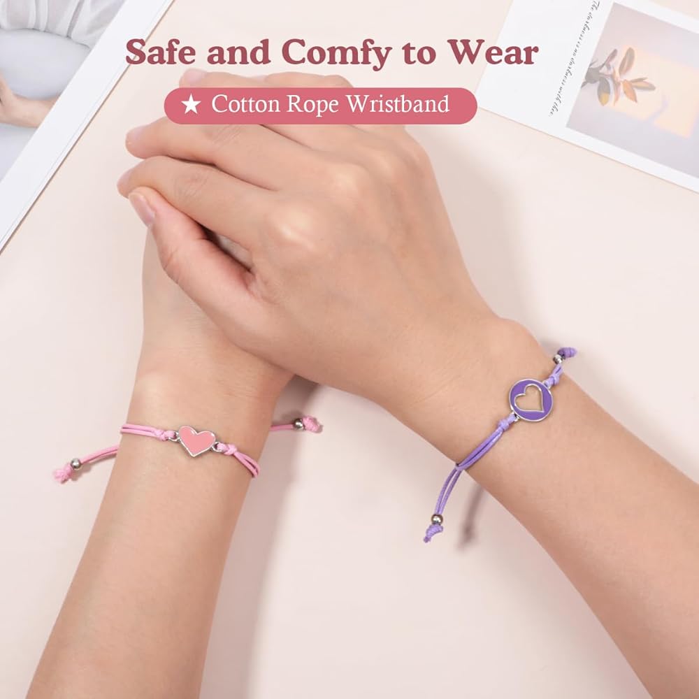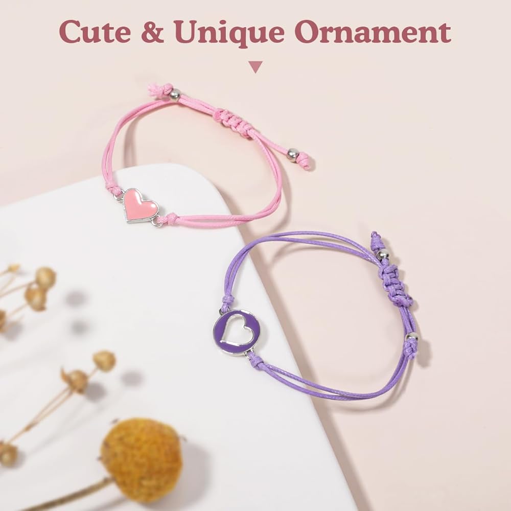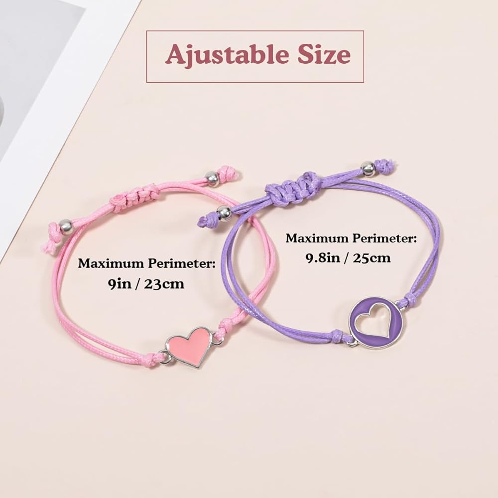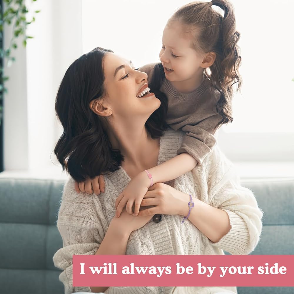 【حجم قابل للتعديل】الحد الأقصى لمحيط السوار الكبير هو 9.8 بوصة / 25 سم، ومحيط السوار الصغير 9 بوصة / 23 سم، مناسب للنساء والفتيات المراهقات والفتيات الصغيرات. يمكنك ارتداء الأساور الخيطية مع ابنتك وإخبارها أنك ستفكرين بها في كل لحظة.