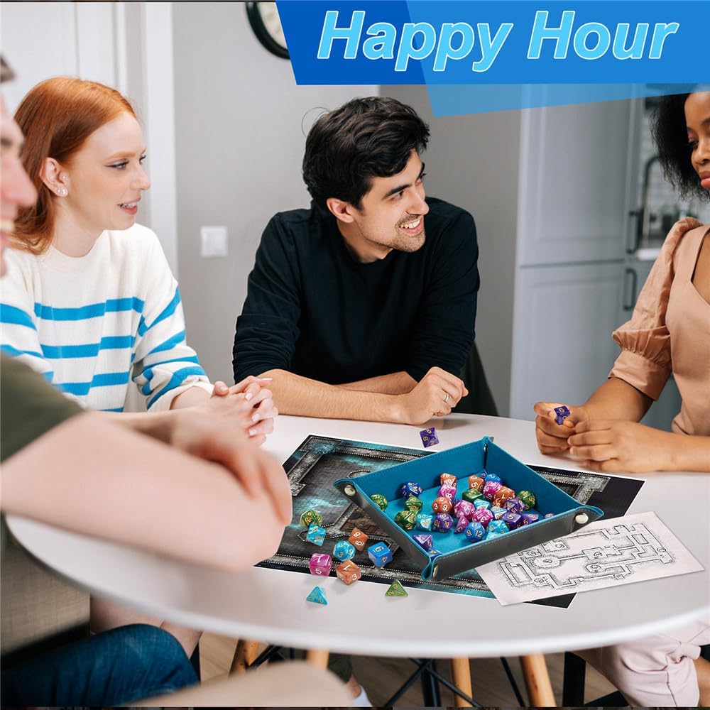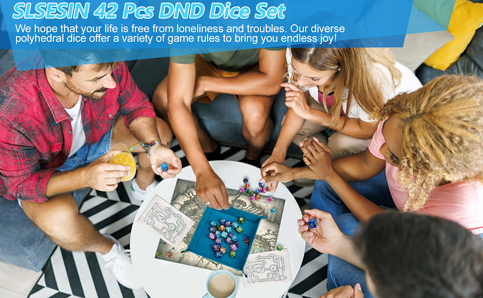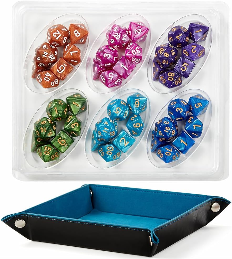 【نرد لعبة متعدد السطوح】تأتي مجموعات النرد DND في 6 مجموعات من 7 مجموعات بإجمالي 42 نرد متعدد السطوح. تشتمل كل مجموعة على 1 نرد D4، 1 نرد D6، 1 نرد D8، 2 D10 (00-90 و0-9)، 1 نرد D12، و1 نرد D20. تتميز هذه النرد الكبيرة متعددة السطوح بأنها ملونة ومصممة بشكل فريد، مما يجعلها مثالية لعشاق ألعاب لعب الأدوار على الطاولة والألعاب ذات الطابع الخيالي.