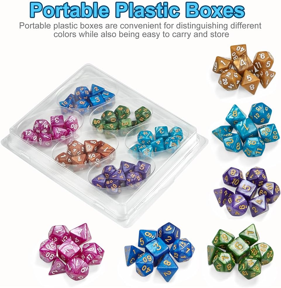 【صندوق بلاستيكي محمول】يحتوي الصندوق على 6 مساحات بيضاوية بالداخل، مما يجعل من السهل التمييز بين الألوان المختلفة. إنه مثالي لتخزين وحمل نرد D&D السائب. يمكن استخدام الصندوق المتين لفترة طويلة، مما يسمح لك بتنظيم وتخزين مجموعة النرد الخاصة بك بشكل أكثر راحة دون الحاجة إلى حقائب صغيرة.