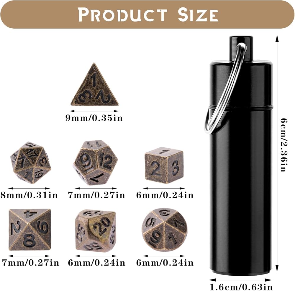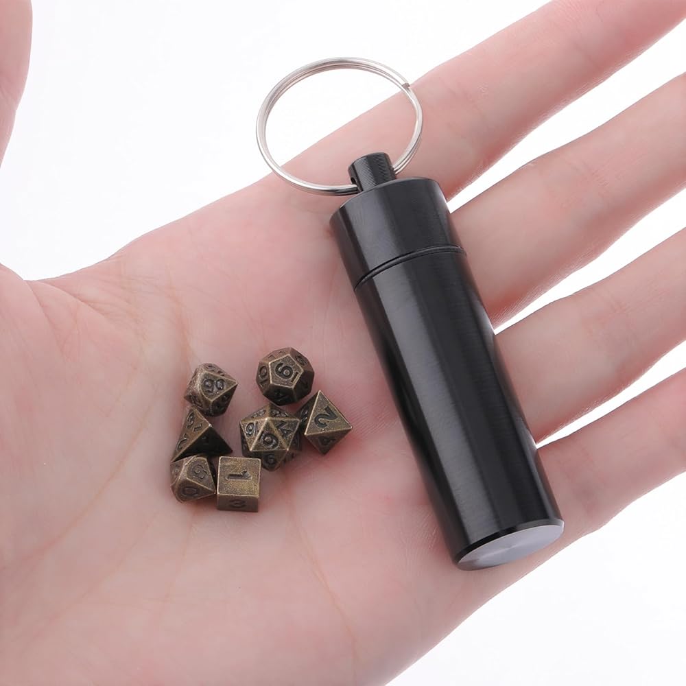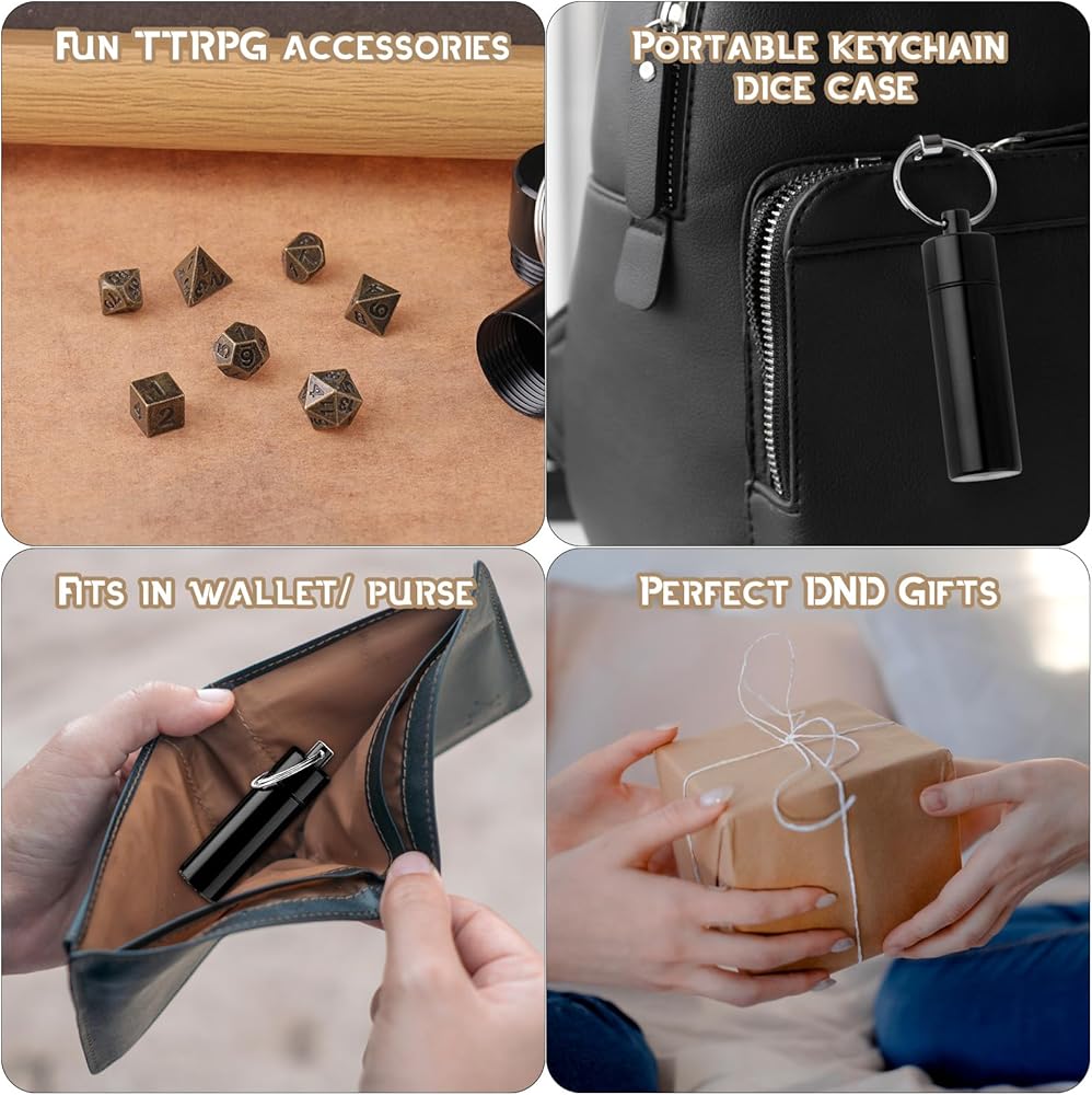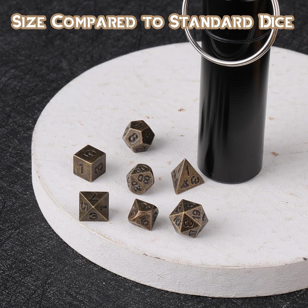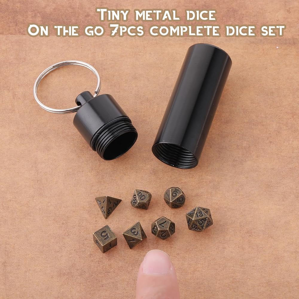 These micro dice set are more than just a functional tool; they are a talisman for your pocket, a symbol of your adventurer spirit. With a sleek aluminum EDC case, these metal dice for keychain are always within your reach. Easily connectable to a key ring or strung on a necklace, your game doesn't pause when you leave the tabletop. This portable mini dice set is a portable gateway to countless adventures, enabling gaming anytime, anywhere.