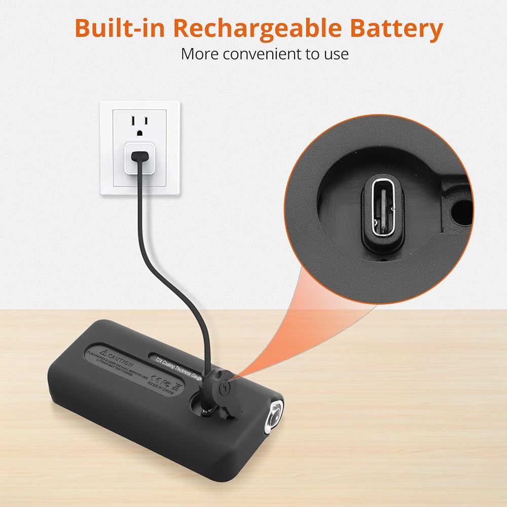 【Built-in Rechargeable Battery】 Rechargeable battery is for ease use, and the thickness gauge can work continuously for 10 hours on a single charge, saving the hassle of frequent battery replacements.