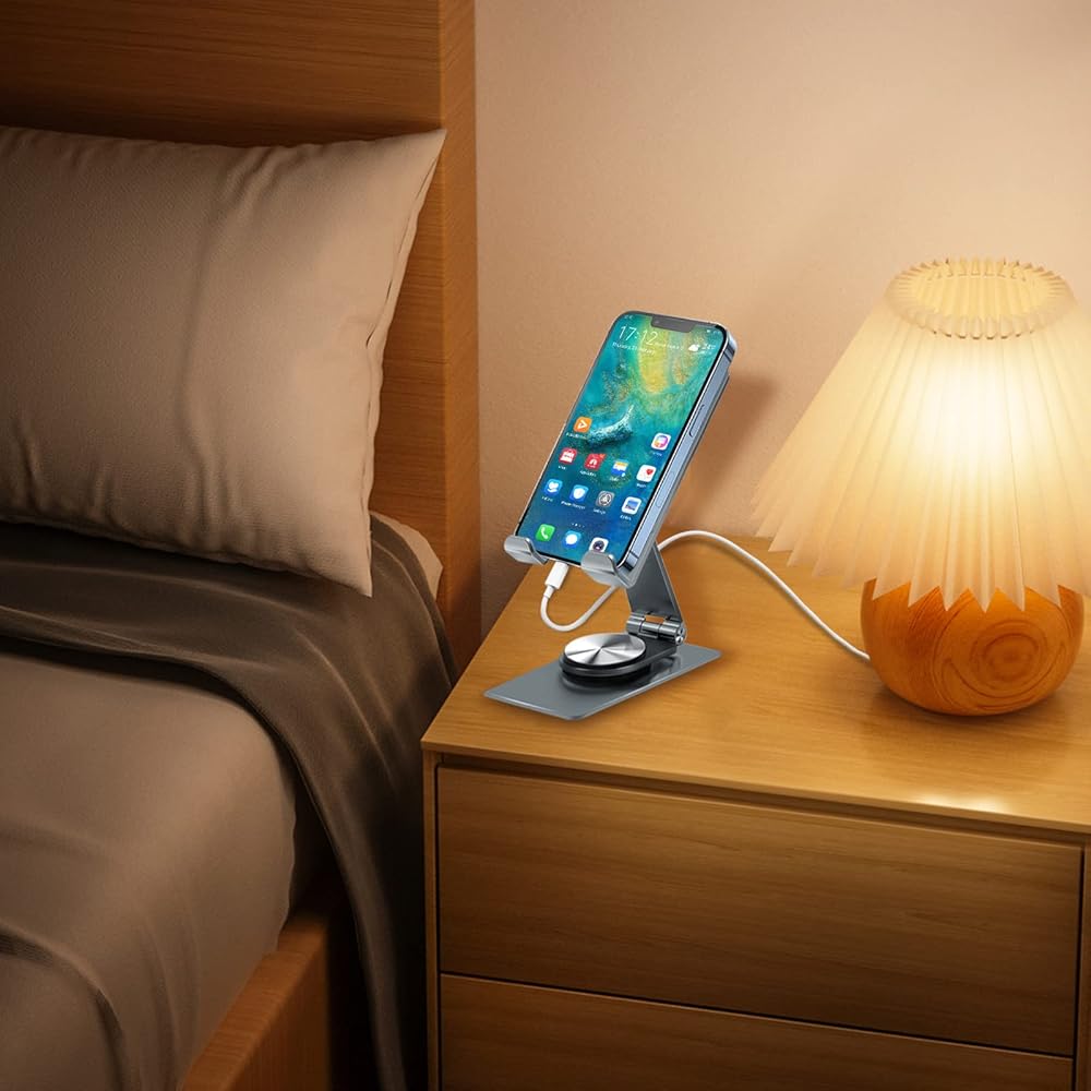 【صديق لكابل البيانات】: تتكيف زاوية وارتفاع حامل الهاتف القابل للطي بشكل مثالي مع سيناريو الاستخدام حيث يتم شحن الهاتف، مما يحل مشكلة أن الحامل التقليدي سوف ينحني كابل البيانات ويتسبب في كسر الواجهة.