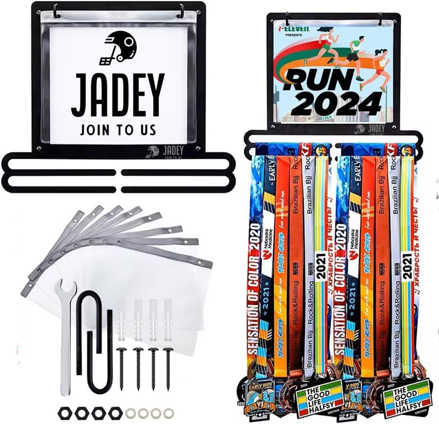 You can mount this medal wall hanger on the wall of your bedroom, den, living room, or office to store and display medals, race bibs, or meaningful photos you've won.