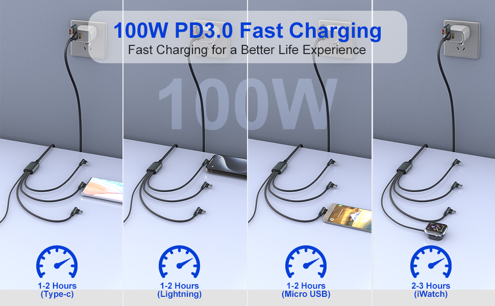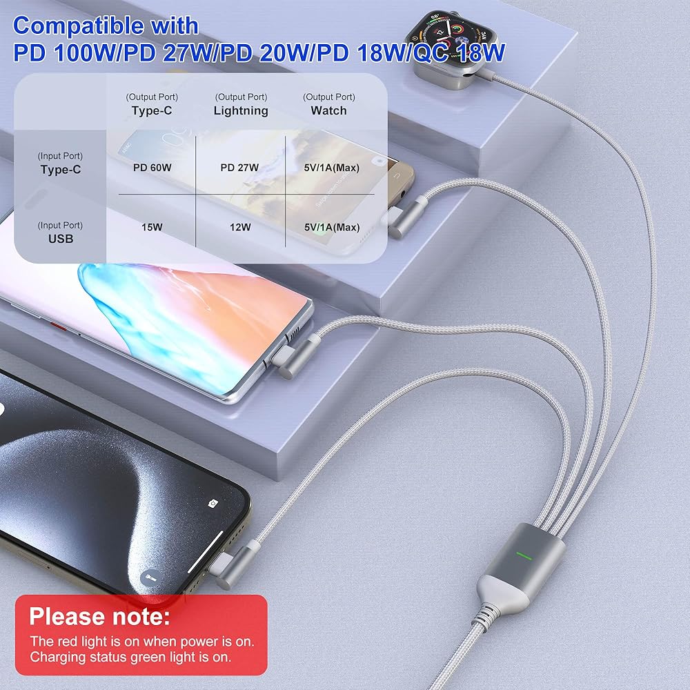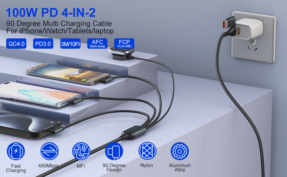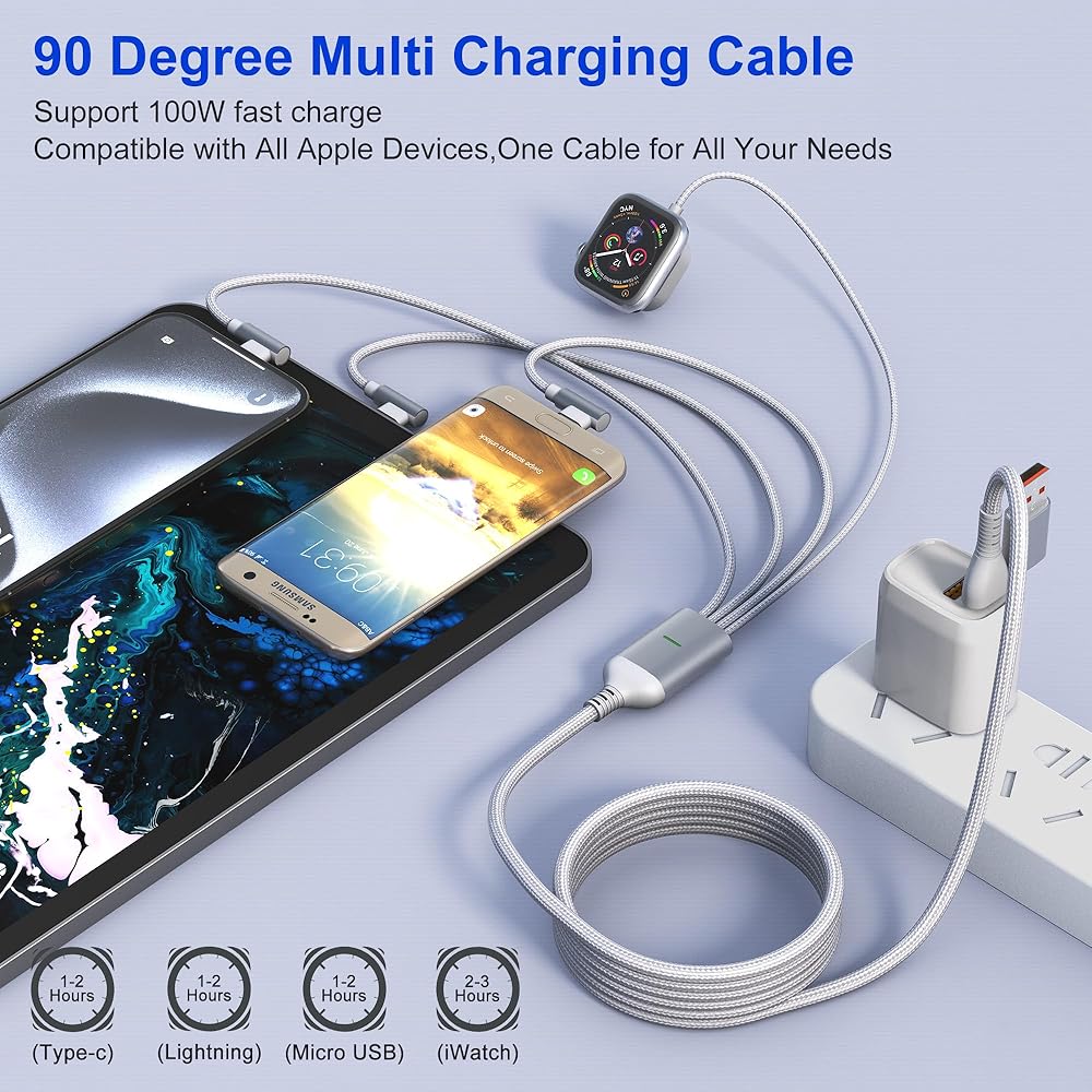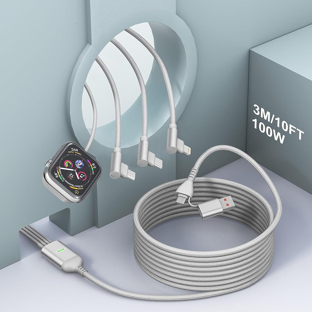 أساسيات السفر وطول 10 أقدام: شاحن السفر هذا لهاتف iPhone وساعة Apple بتصميم خفيف الوزن ومحمول، كابل شحن بطول 10 أقدام 4 في 2 مع 4 منافذ إخراج بما في ذلك شاحن Micro USB/Lighting/Type C/iWatch. تسمح موصلات الإدخال USB A وC بالشحن في أي مكان. طول الكابل المثالي 10 أقدام يناسب حقيبة السفر الخاصة بك ويمكنك اصطحابه أثناء التنقل أو ببساطة استخدمه في المنزل والمكتب، وسهل شحن ساعتك وهاتفك في أي وقت.