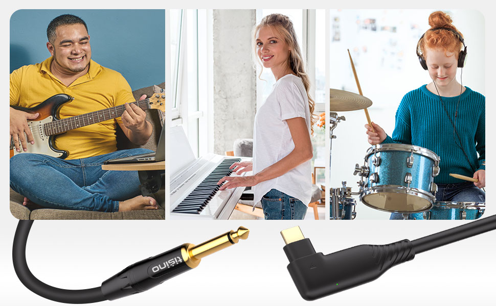 [تصميم وظيفي] يتيح لك كابل جيتار USB C إلى 6.35 مم TS Mono Bass نقل إشارة صوتية دقيقة، مما يسمح لك بتوصيل جيتار الجهير أو لوحة المفاتيح الإلكترونية أو مجموعة الطبل بسهولة بجهاز كمبيوتر من النوع C أو كمبيوتر أو كمبيوتر محمول أو جهاز لوحي أو هاتف ذكي التسجيل أو الأداء عبر الإنترنت.