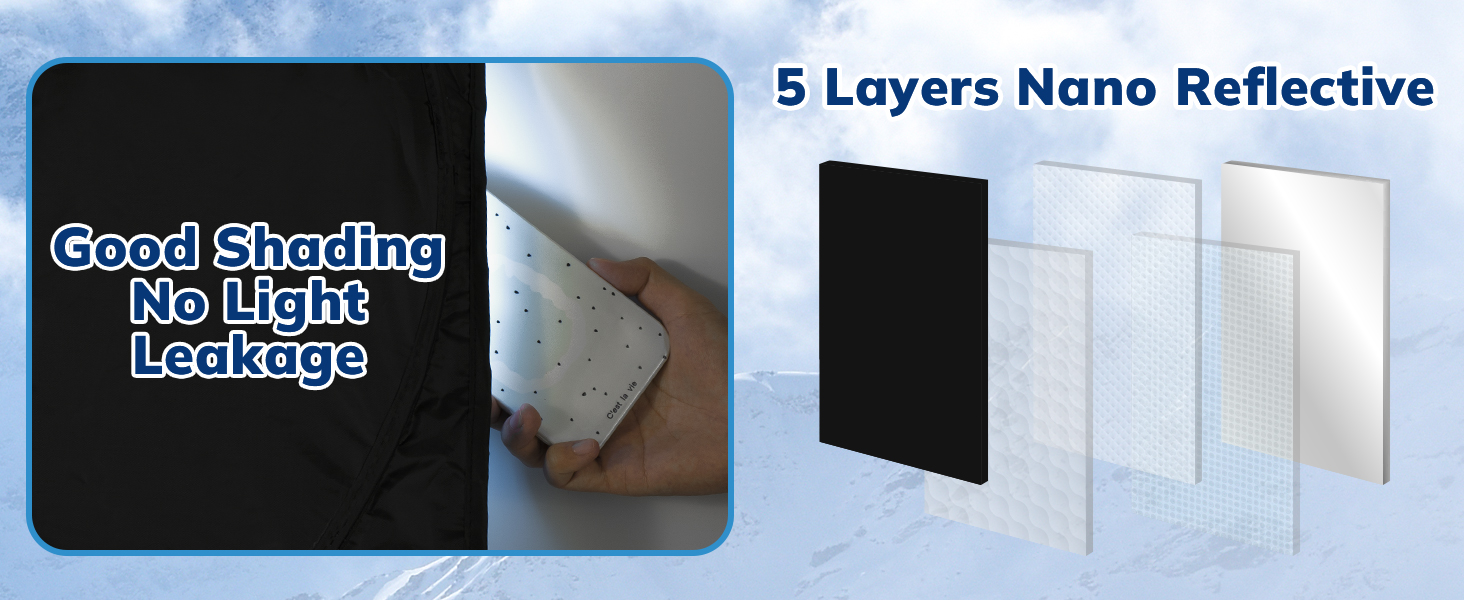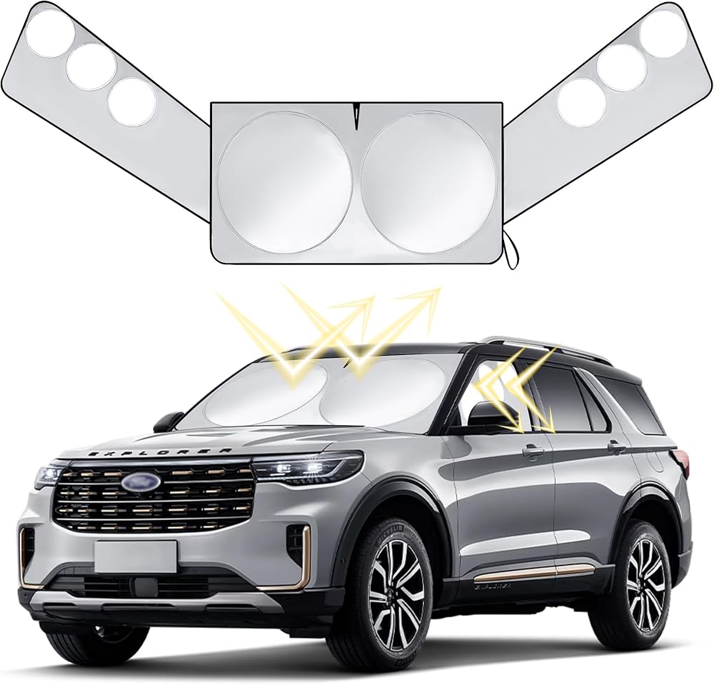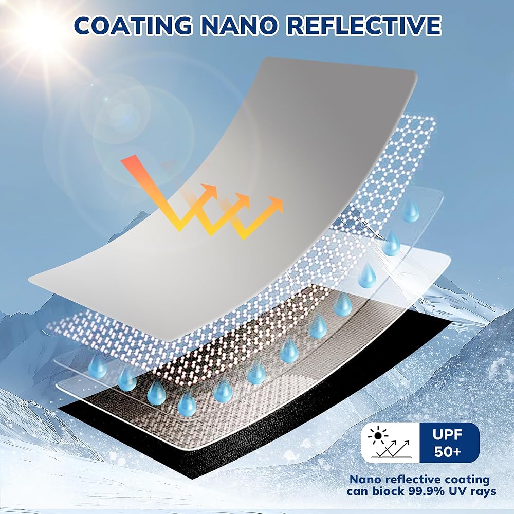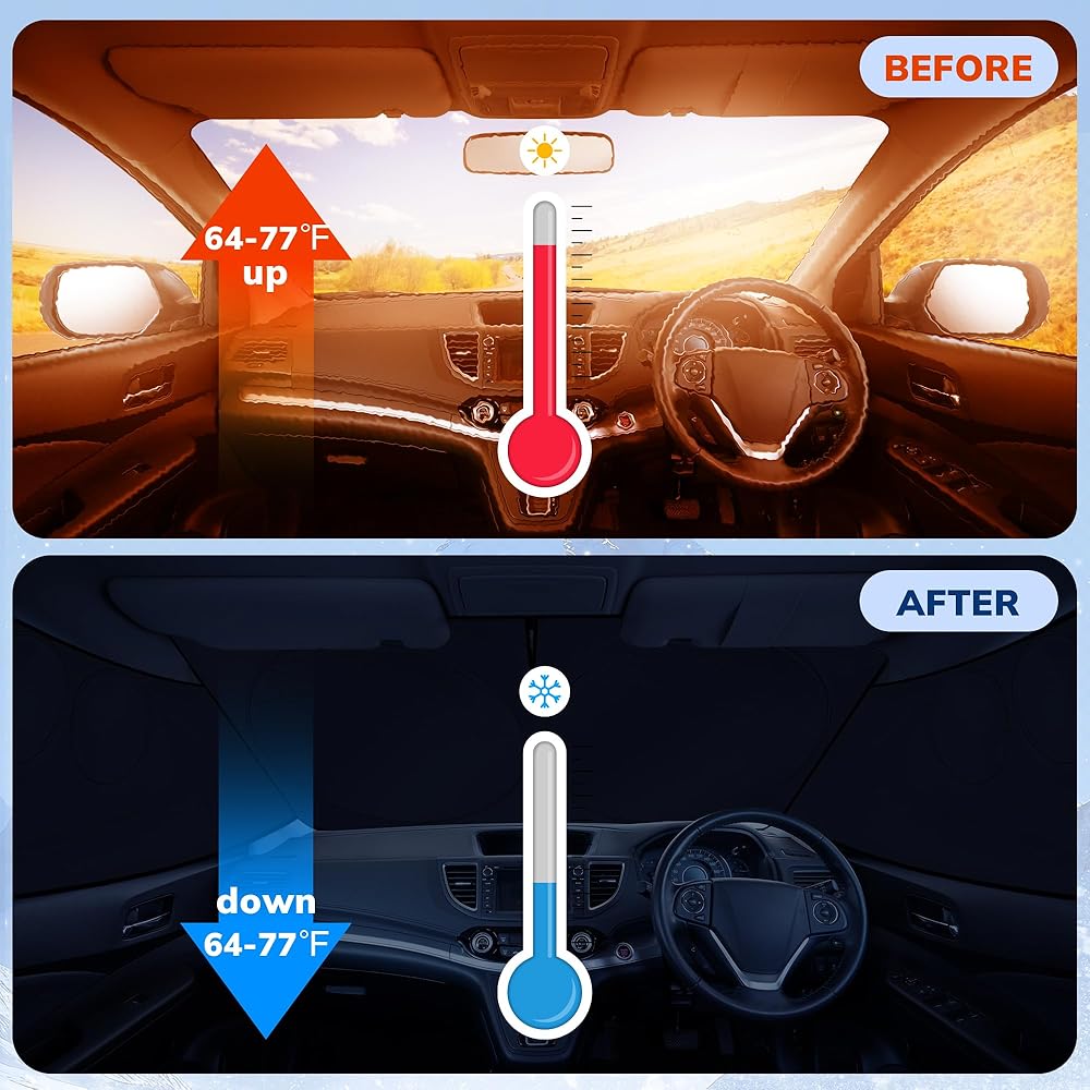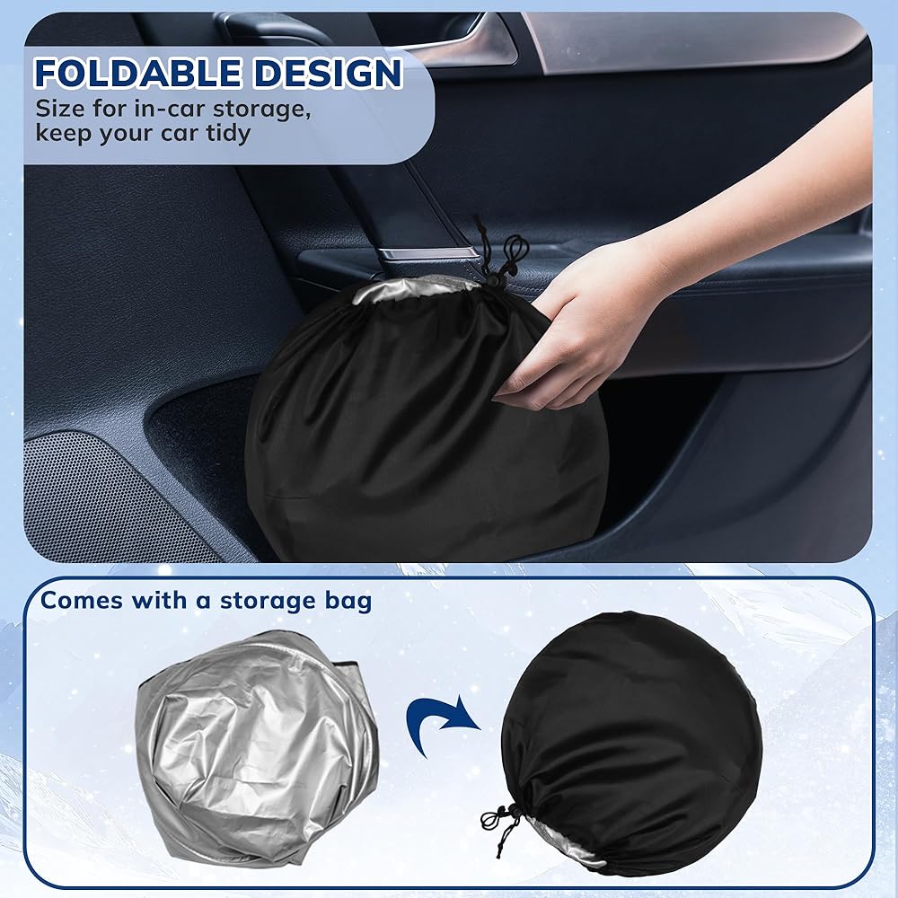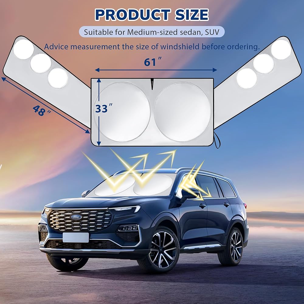 خامة عالية الجودة: مصنوعة من قماش مطلي بالفضة 240T. تعكس الطبقة المطلية بالفضة الأشعة فوق البنفسجية والحرارة بشكل فعال. المادة قوية ومضادة للشيخوخة وتدوم طويلاً. يمكن طي الواقي لسهولة التخزين دون أن يشغل مساحة.
