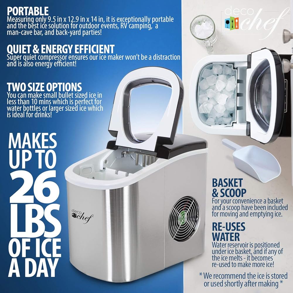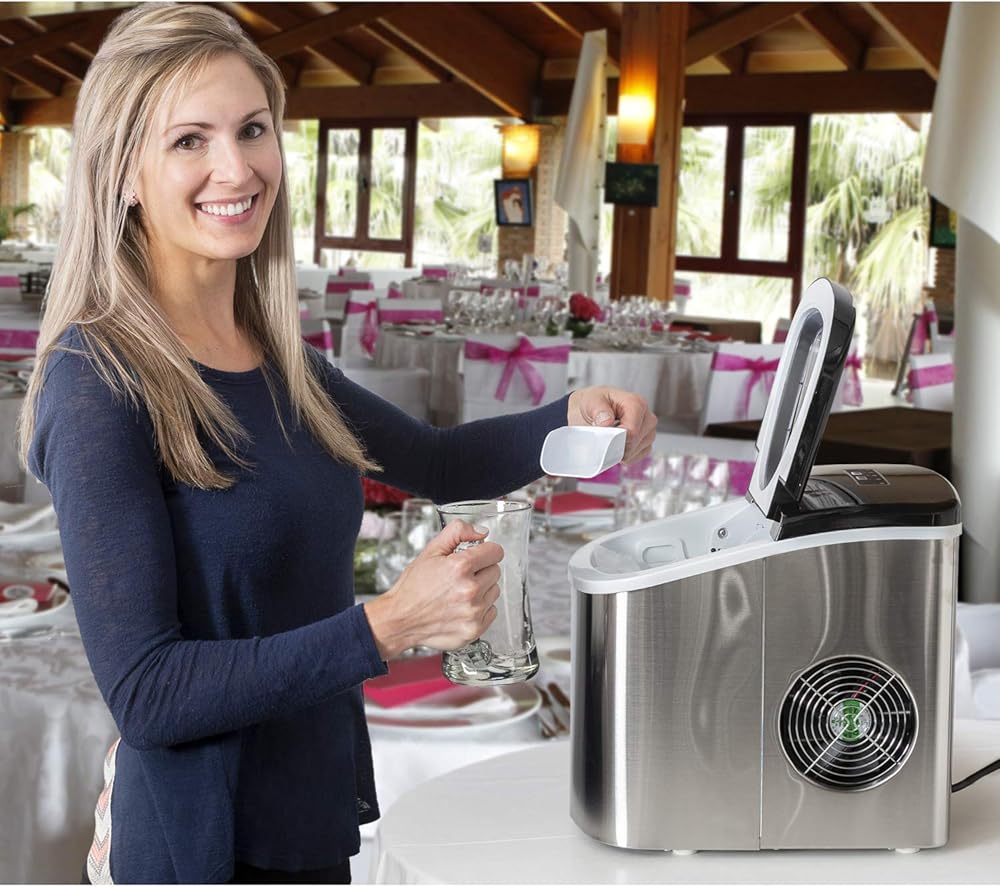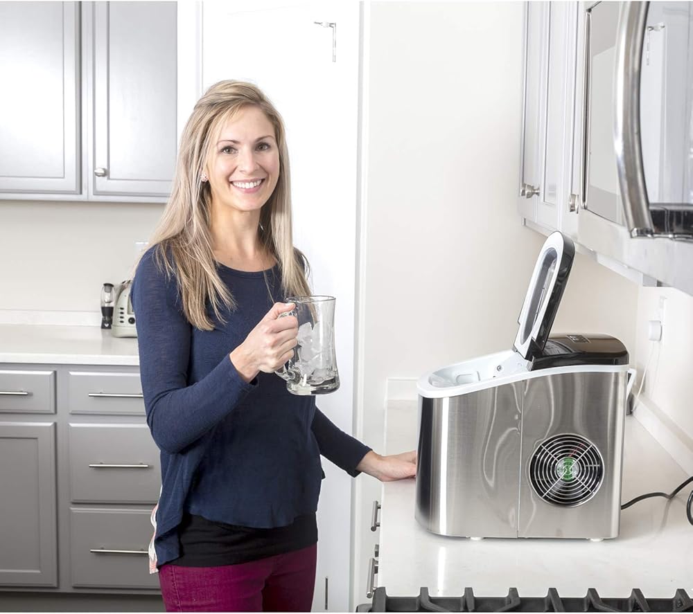 ما عليك سوى توصيل الوحدة وإضافة الماء والاستمتاع بكمية من الثلج في أقل من 6 دقائق. قادرة على صنع ما يصل إلى 26 رطلا. خلال 24 ساعة من مكعبات الثلج يوميًا، لن تضطر أبدًا إلى التعامل مع صواني الثلج المزعجة مرة أخرى