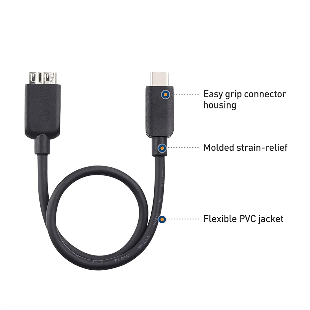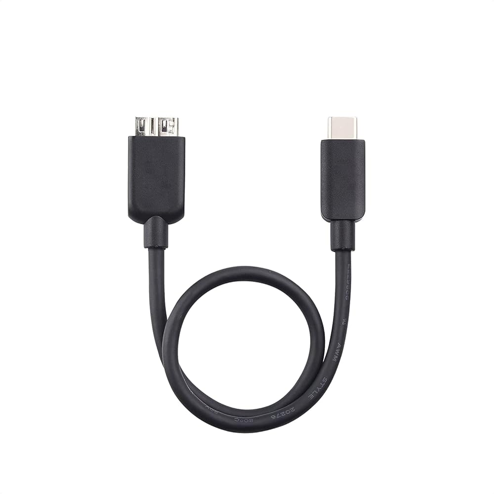 Elevate Your Data Transfer Experience with Our High-Speed Hard Drive Cable Our USB C to Micro B cable is engineered to bridge the gap between your cutting-edge USB-C devices and your external hard drives with Micro B ports. This 1-foot cable is not just a means of connection; it's a gateway to efficient, high-speed data transfer and management. Features and Benefits: High-Speed Data Transfer: With USB 3.1 technology, enjoy data transfer speeds of up to 10Gbps. Transfer large files, photos, and videos at blazing speeds, significantly reducing waiting time. Compact and Convenient: The 1-foot length is perfect for organized, tidy workspaces, eliminating excess cable clutter. It's ideal for connecting devices that are close together without sacrificing performance. Universal Compatibility: This cable is designed to connect USB-C enabled devices like laptops, tablets, and smartphones to external hard drives, printers, and cameras that have a Micro B port. Durable and Reliable: Crafted with high-quality materials, this cable is built to last. Its robust design ensures it can withstand daily use, providing a dependable connection between your devices. Easy to Use: This plug-and-play cable requires no installation of drivers or software. Just connect your devices, and you're ready to go. Its user-friendly design makes it suitable for both tech-savvy users and beginners. Practical Applications: Whether you're a professional requiring fast access to external hard drive data, a photographer transferring high-resolution images, or a casual user backing up files, this cable meets your needs. Its speed, reliability, and simplicity make it an essential accessory for anyone looking to enhance their data transfer experience. Why Choose This USB C to Micro B Cable? If you demand efficiency, durability, and high performance in your data transfers, this cable is the perfect choice. It combines the latest technology with user-friendly features, providing a seamless, hassle-free experience. Upgrade your connectivity and enjoy the speed and reliability of our hard drive cable. Experience the difference in speed and efficiency with our Hard Drive Cable Micro B to USB C – your solution for superior data management.