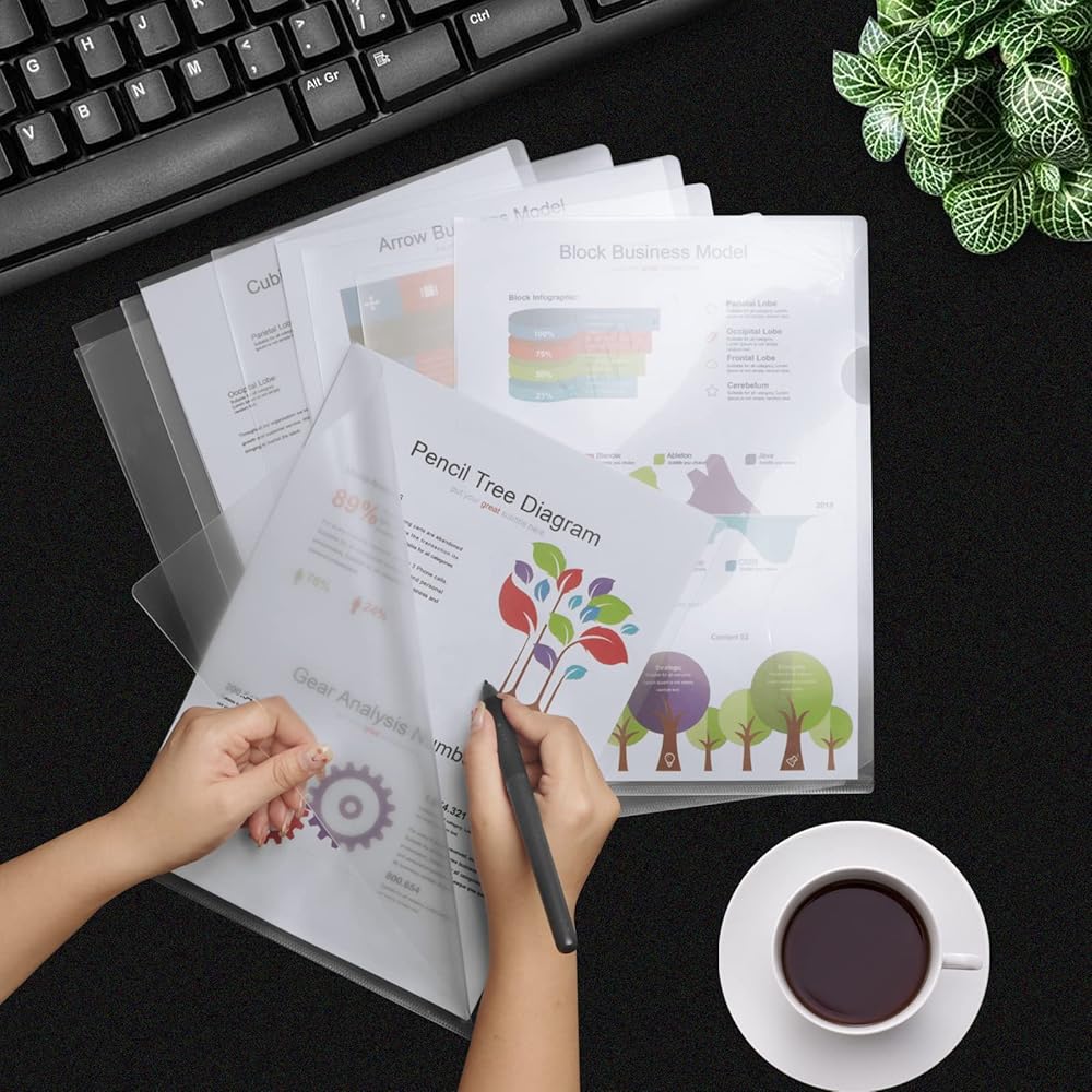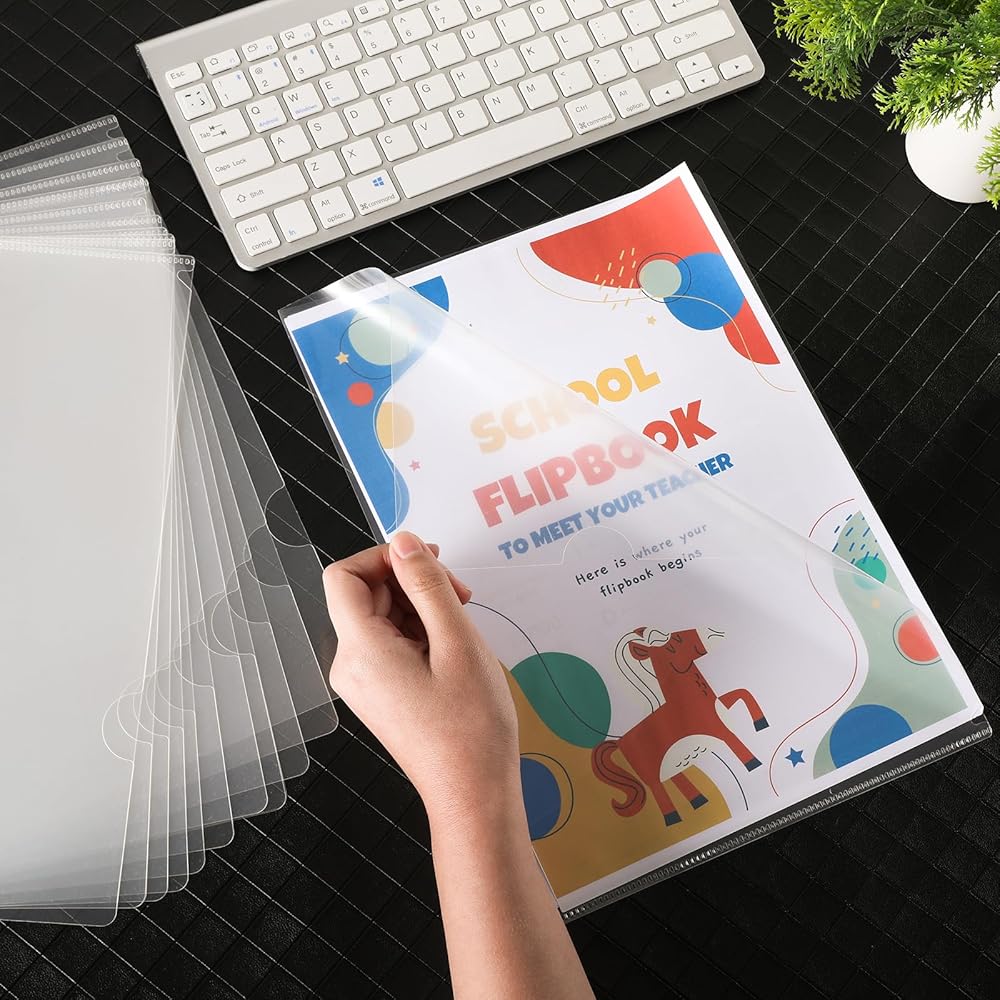 18 حزمة من مجلدات المستندات البلاستيكية الشفافة للورق بحجم A4/Letter، وجيوب مشروع من النوع L للمكتب والمدرسة