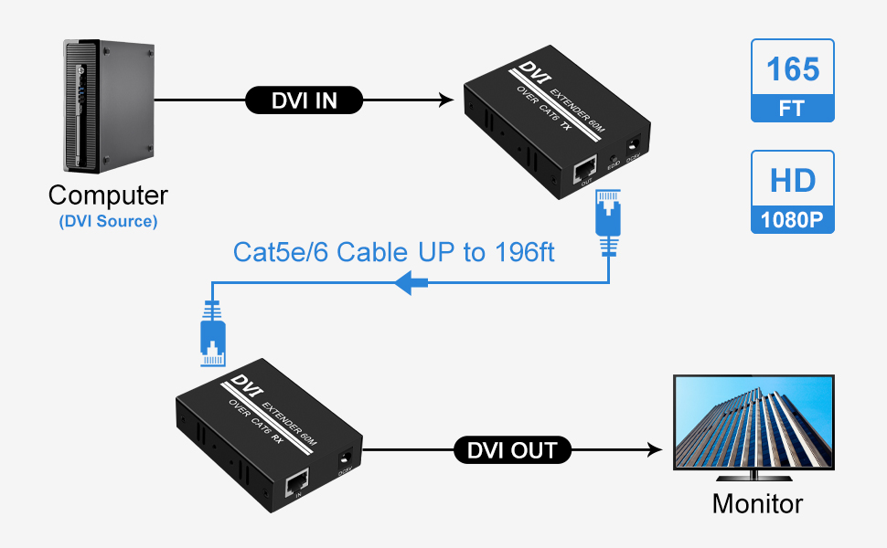 【موسع DVI عبر CAT6】يساعدك موسع HDMI التوصيل والتشغيل هذا على نقل الفيديو والصوت عالي الدقة في وقت واحد، لنقل 196 قدمًا عبر كابل CAT6 LAN النحاسي الخالي من الأكسجين. Zero Video Latency، مما يجعله خيارًا رائعًا للمؤتمرات الخارجية أو الداخلية أو المشروعات أو مؤتمرات الفيديو.