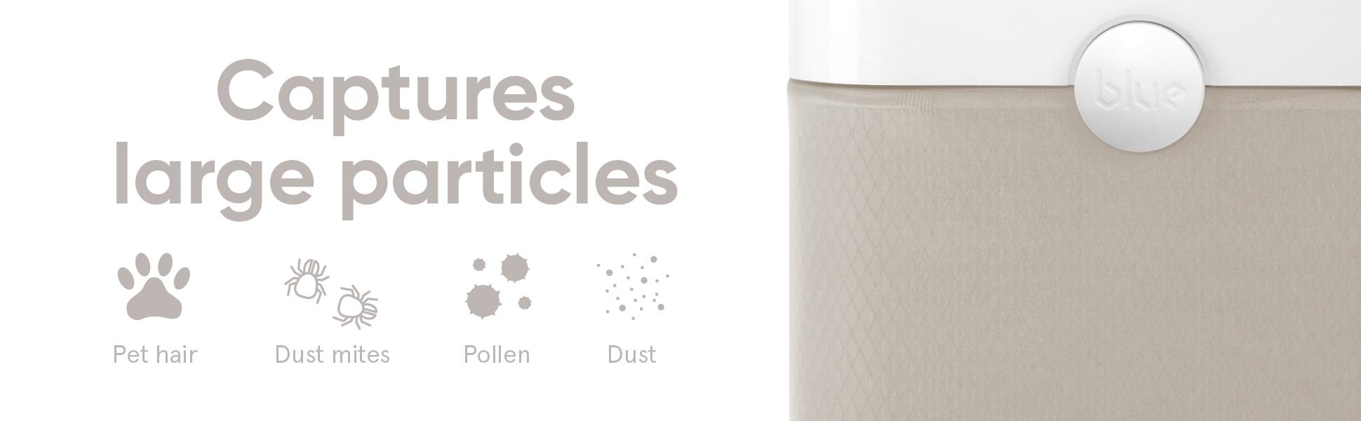 يقلل من الجزيئات الكبيرة في الهواء؛ مثل الغبار والوبر وحبوب اللقاح وقشرة الحيوانات الأليفة.