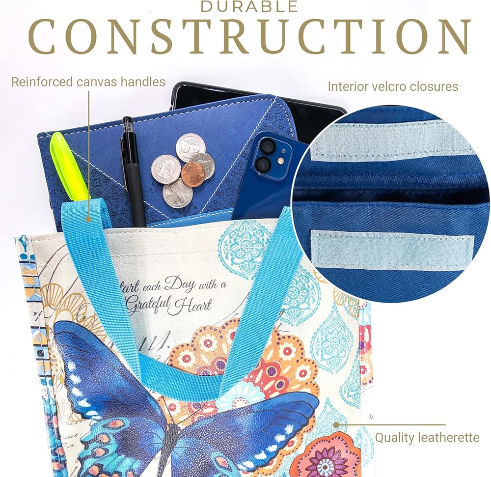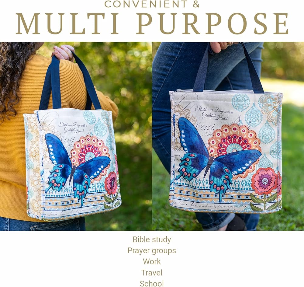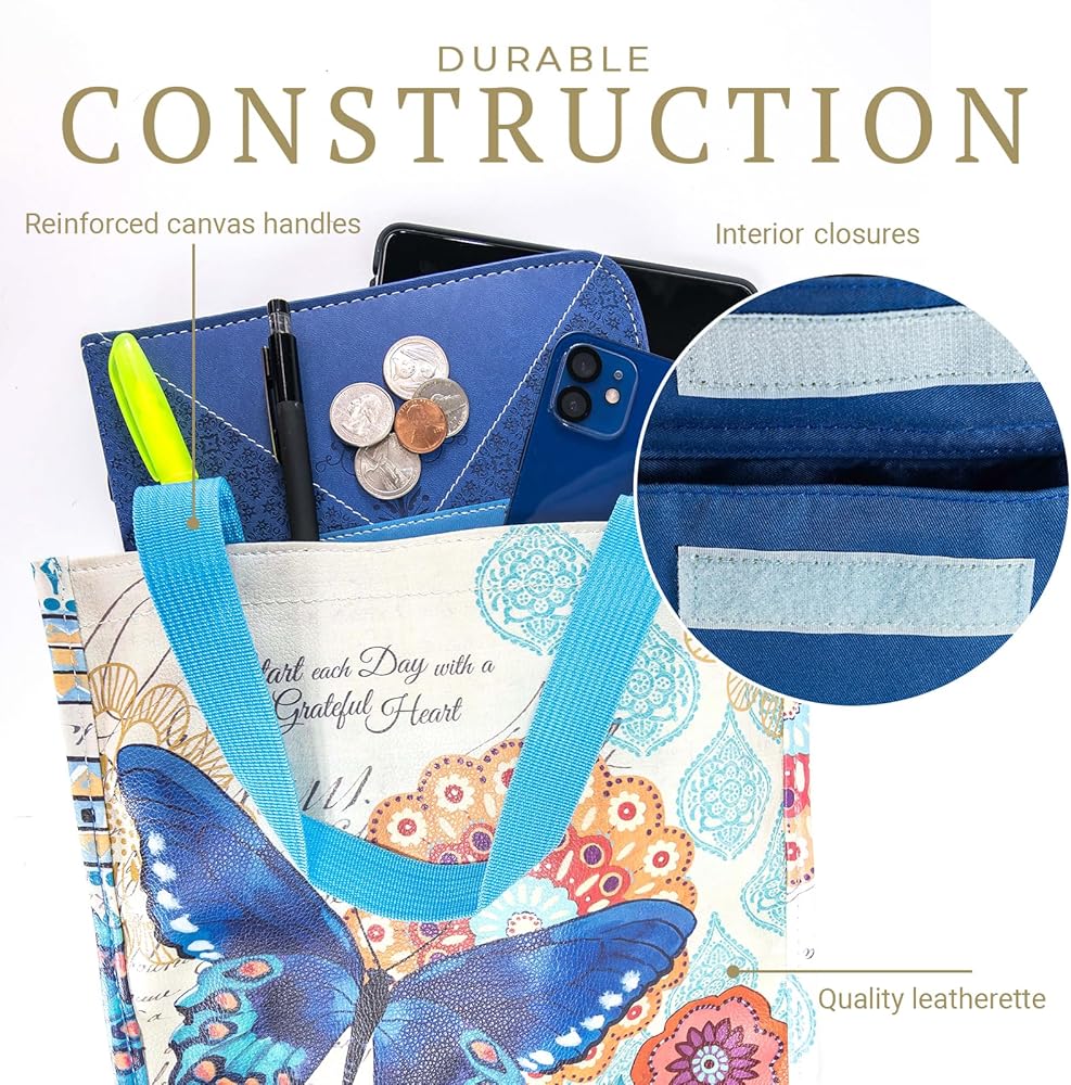 حقيبة الكتاب المقدس النسائية الخاصة بنا تشجع الأمل والإيمان في كل لمحة. تزين طبعة الأزهار الحقيبة الخارجية كتذكير بصري بكلمته.