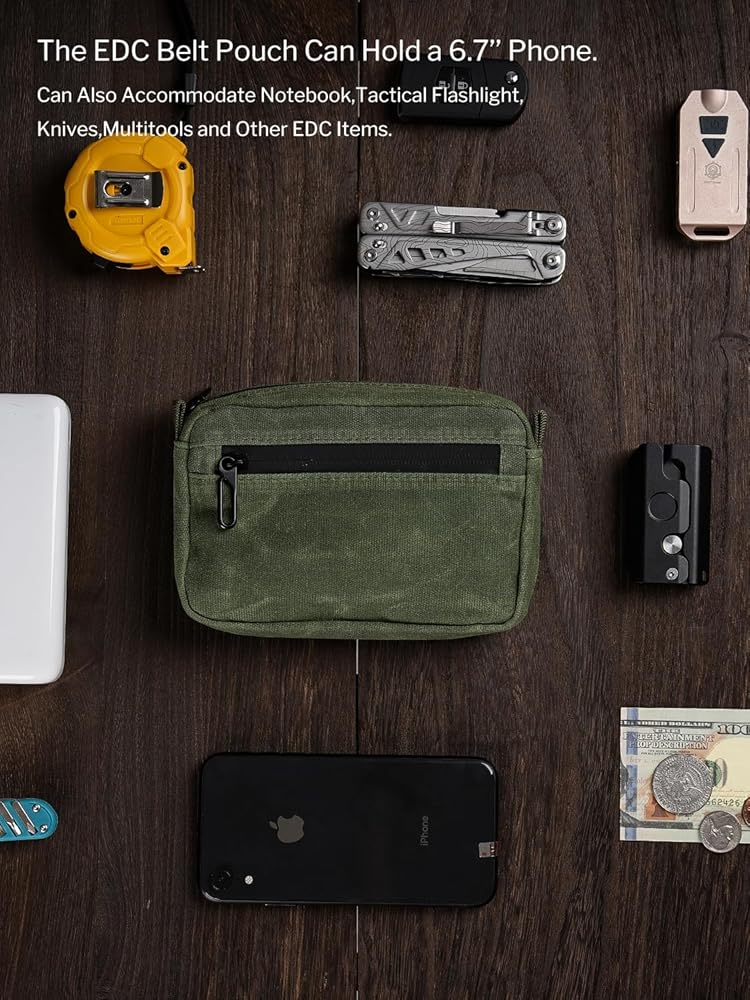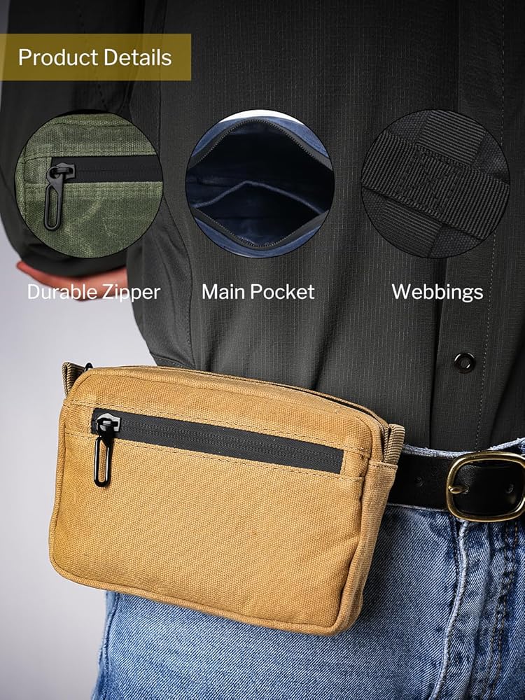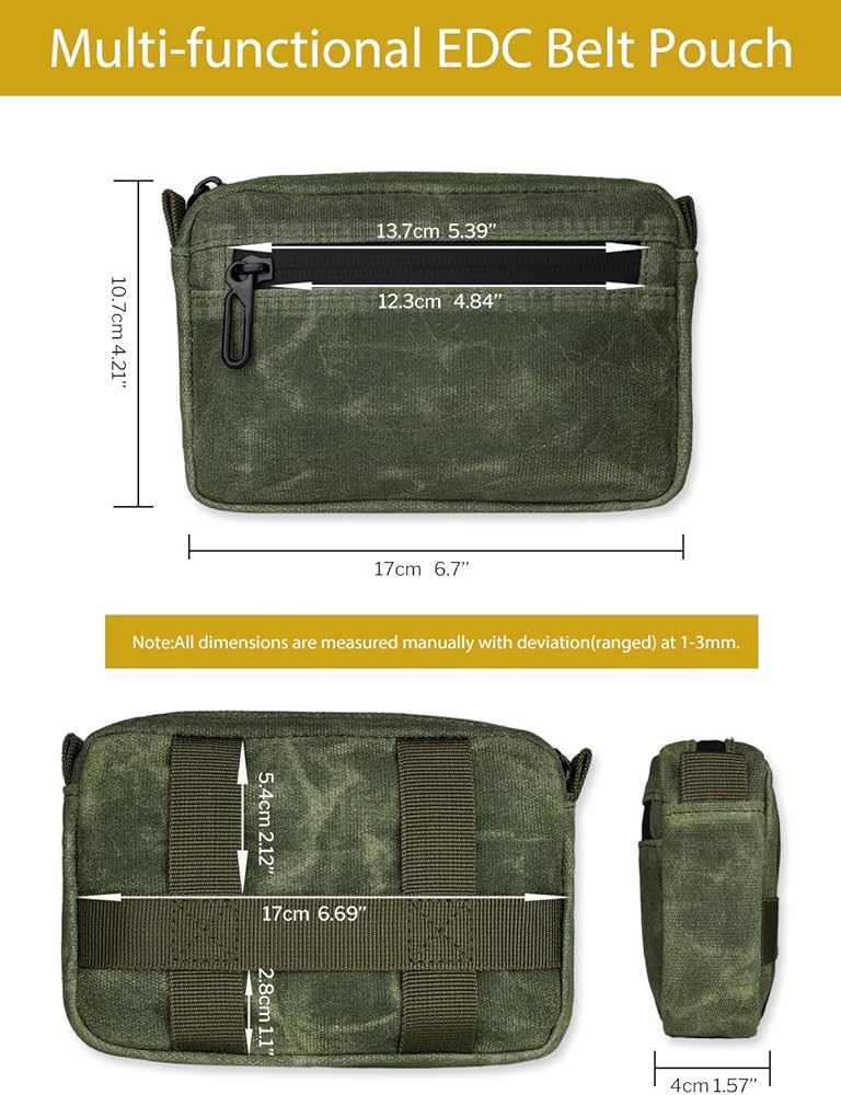 حقيبة حزام صغيرة للرجال: يحتوي منظم الحقيبة EDC هذا على 3 جيوب (بما في ذلك جيب أمامي بسحاب، وجيب رئيسي كبير وجيب داخلي واحد). يبلغ مقاس حقيبة الأدوات هذه 6.85 بوصة × 4.33 بوصة × 1.49 بوصة، وهذا الحجم يمكن أن يحمل المزيد من معدات EDC مقارنة بحقيبة EDC المعتادة، مما يجعلها حقيبة يومية مريحة يمكن تعليقها بسهولة على حزامك. تضمن السحابات الناعمة والمتينة سهولة الوصول إلى الأشياء.