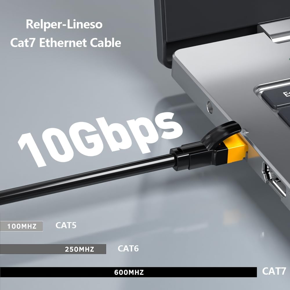 • Hyper Speed Performance: Relper-Lineso Cat7 Ethernet Cable provides perfect performance of 600MHz bandwidth and 10Gbps high speed data transmission. 28AWG Lan Cables suitable Indoor/Outdoor at hyper speed without cable mess. No worries about network delay when playing games, streaming 4K Videos, and downloading.