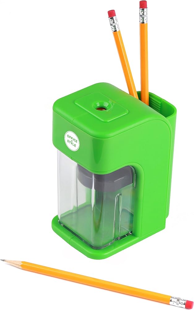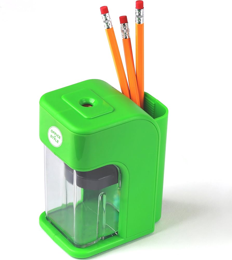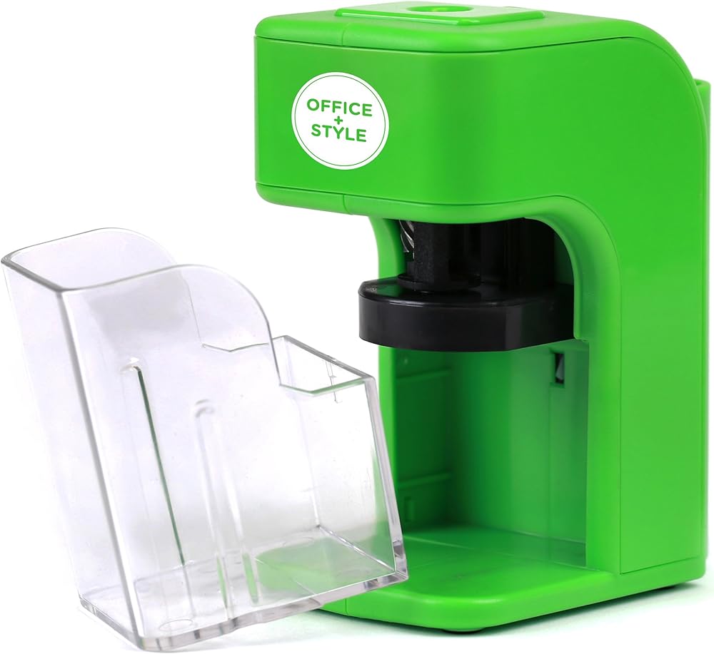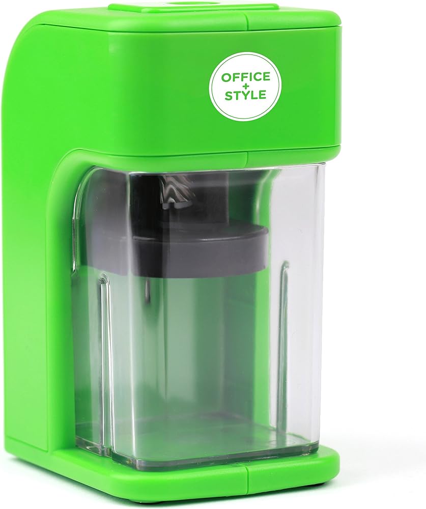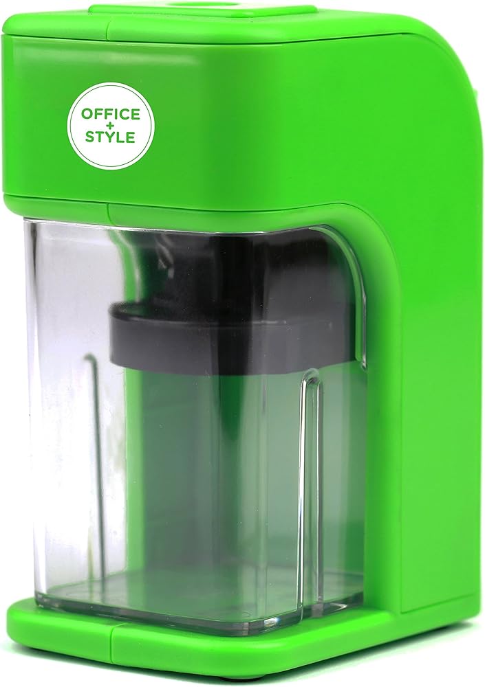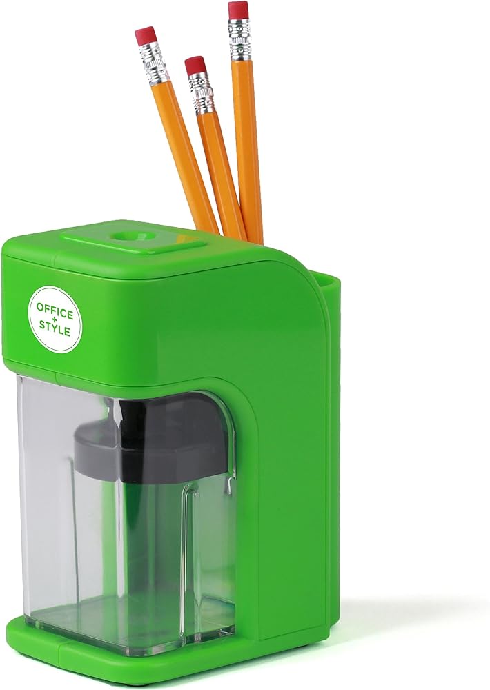 مبراة أقلام إلكترونية على طراز Office مع ميزة أمان التوقف التلقائي وحامل أقلام كبير للمنزل أو المكتب أو الفصل الدراسي - أخضر - من Office + Style، A-PS200G