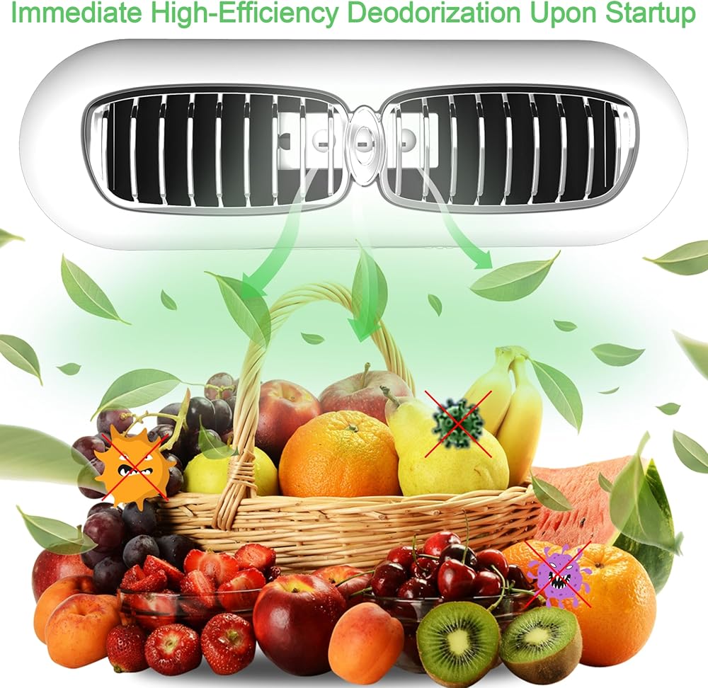 مزيل الروائح الكريهة للثلاجة الصغيرة بمنفذ USB امن وصحي للثلاجة يحافظ على الطعام طازجًا اكثر فعالية من اكياس الفحم 30 مرة، للثلاجة وخزانة الاحذية وخزانة الملابس
