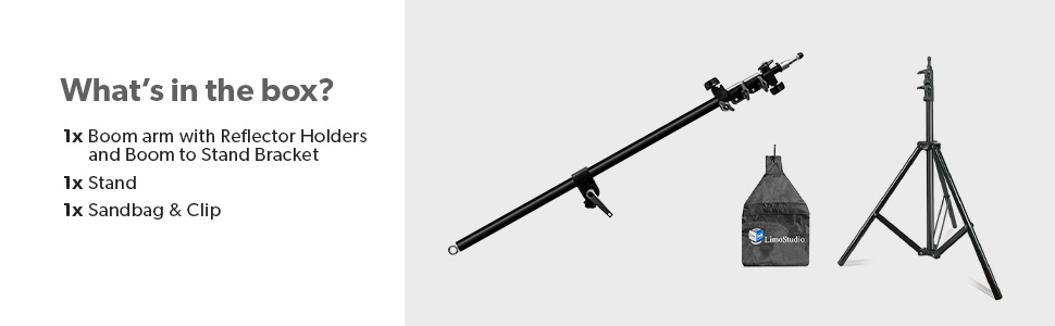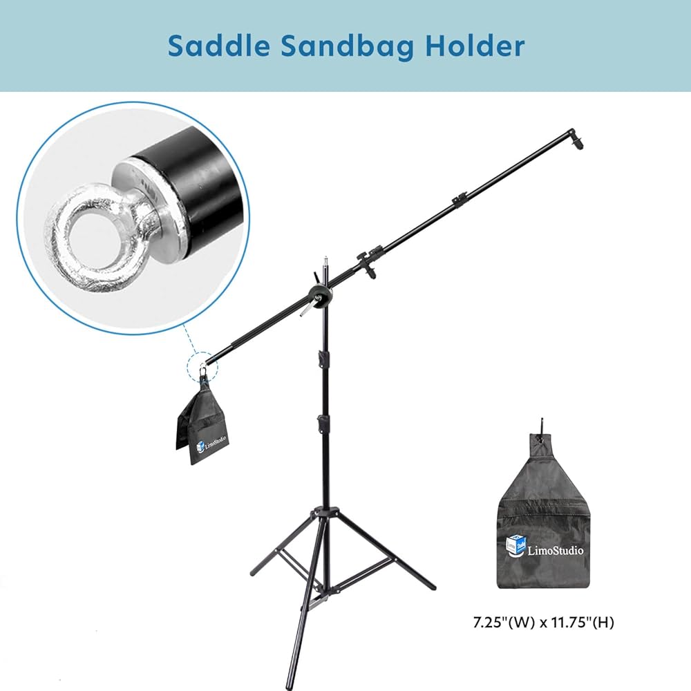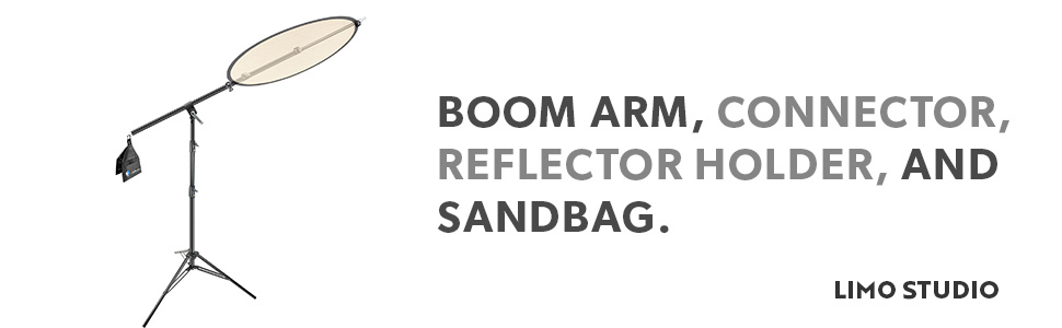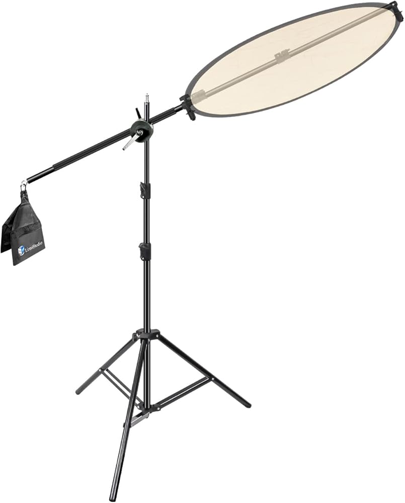 LimoStudio Photo Studio بطول 92 بوصة، حامل ذراع عاكس للإضاءة، حامل عاكس، ذراع بوم، حامل خفيف، حقيبة رمل، مشبك محول يربط ذراع الذراع بالوقوف، AGG812